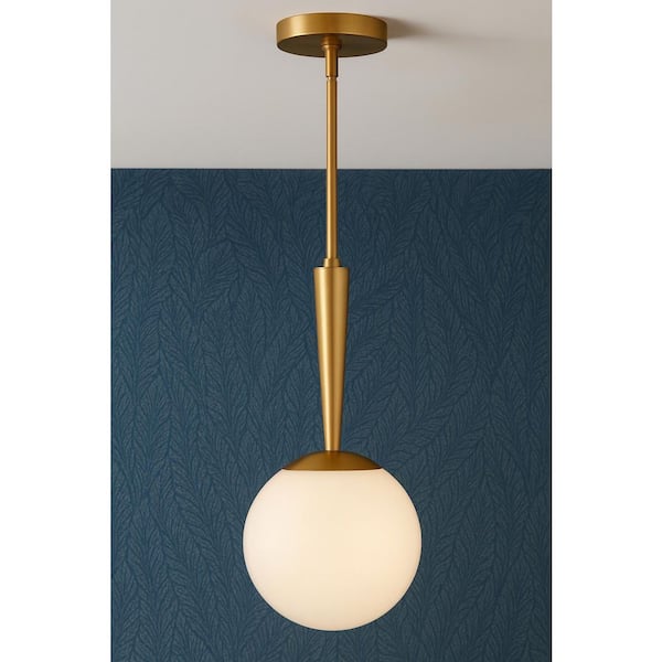• Warm, lacquered brass finish paired with a cased opal globe