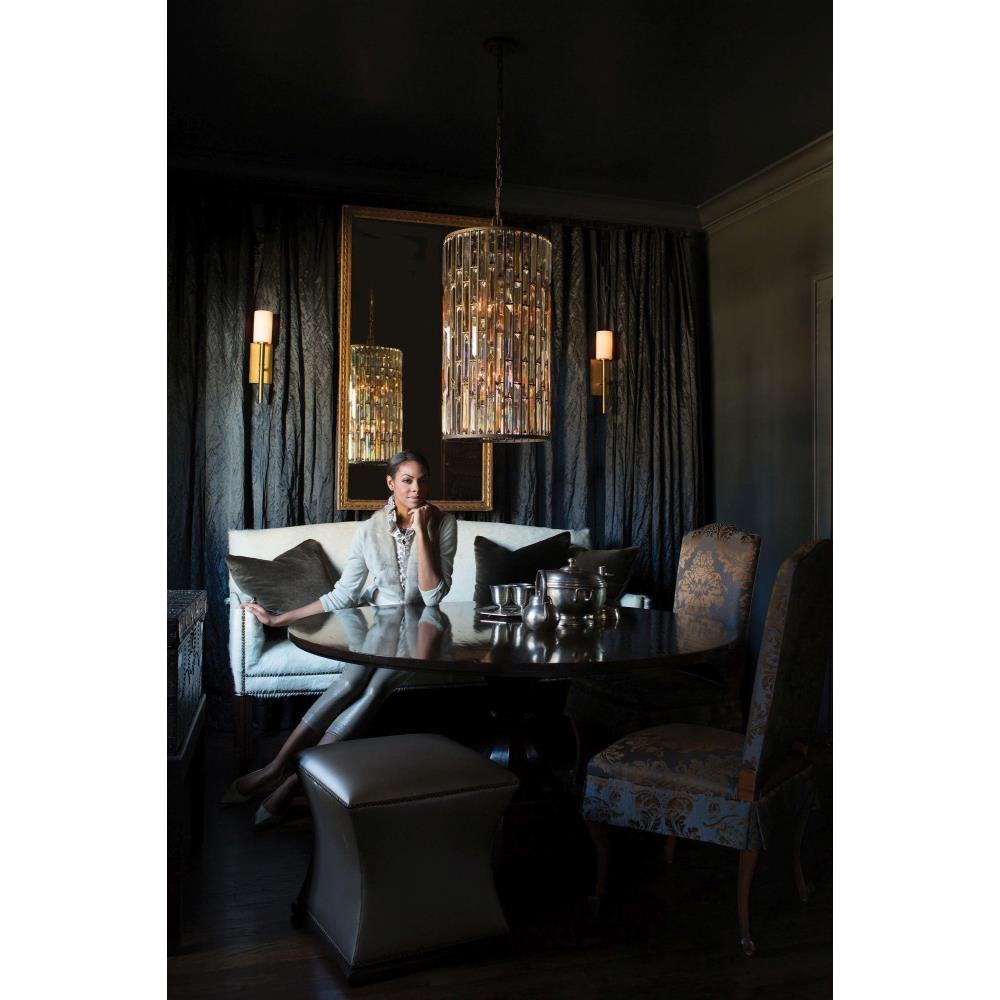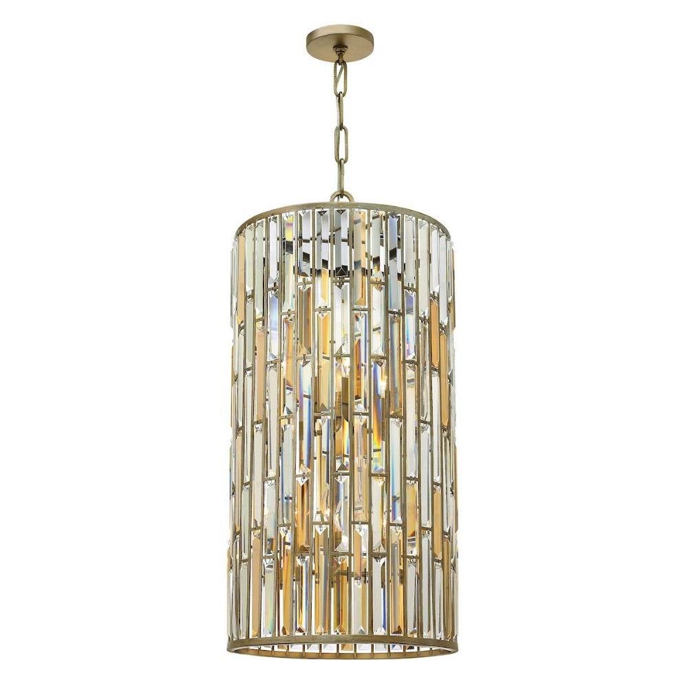 Gemma is a contemporary chandelier collection with stunning rectangular prisms of amber pearl and clear crystal set within a frame of Vintage Bronze or Silver Leaf to create a seamless sparkling, jewelry-like effect.