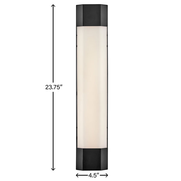 Hinkley's Facet Large Wall Mount Lantern brings a modern flare to outdoor illumination, with its sleek rectangular design, hexagonal glass, and angled details, a bold crisp fixture is produced. The etched white glass and black finish perfectly compliment the fixtures minimalistic design, and the aluminum construction aids in its durability. This versatile fixture can be mounted vertically and horizontally, whatever suits your home's need. Illuminate your outdoor space with Hinkley's Facet and its integrated 24w LED bulb. Integrated LED bulbs holds a 5-year warranty and a two year defect warranty, subject to certain conditions and exclusions. This fixture is ADA compliant meaning it adheres to the standards and guidelines listed by the Americans with Disabilities Act.