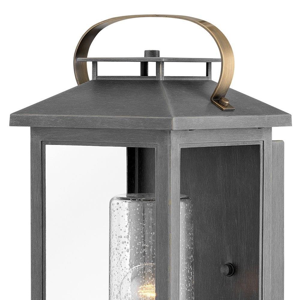 Classic and elegant, Atwater offers beauty and endurance. Constructed from a composite material and treated with an anti-fading agent, the updated coastal design incorporates elegant brass accents, handle, and an inner glass that creates a faux candle effect. The high-performance finish is resistant to rust and corrosion with a 5-year warranty.5 year finish warranty / Rich gray tone / Suitable for use in wet (outdoor direct rain or sprinkler) locations as defined by NEC and CEC. Meets United States UL Underwriters Laboratories & CSA Canadian Standards Association Product Safety Standards / Meets California Energy Commission Title regulations/JA8 when using the included LED bulb / LED Bulbs carry a 3-year limited warranty / The Coastal Elements Collection offers versatile designs, constructed of composite materials and coated with anti-fading finishes, for maximum durability in harsh climates. / Images are for reference purpose only and may not be pictured with the specified LED filament bulb. / Classic, modern style with a nautical flair adds elegance to a variety of exteriors