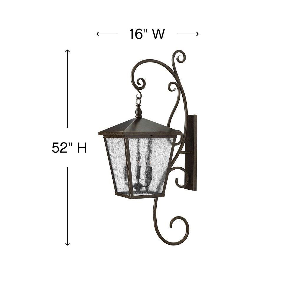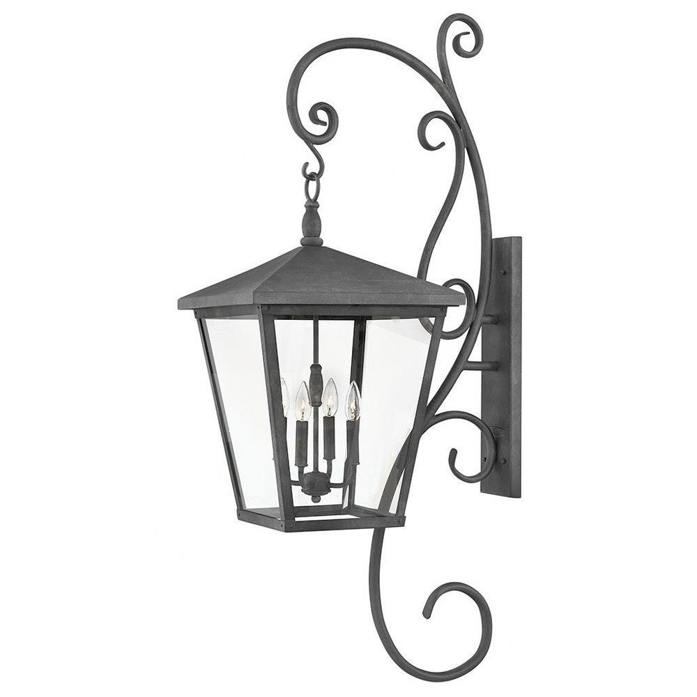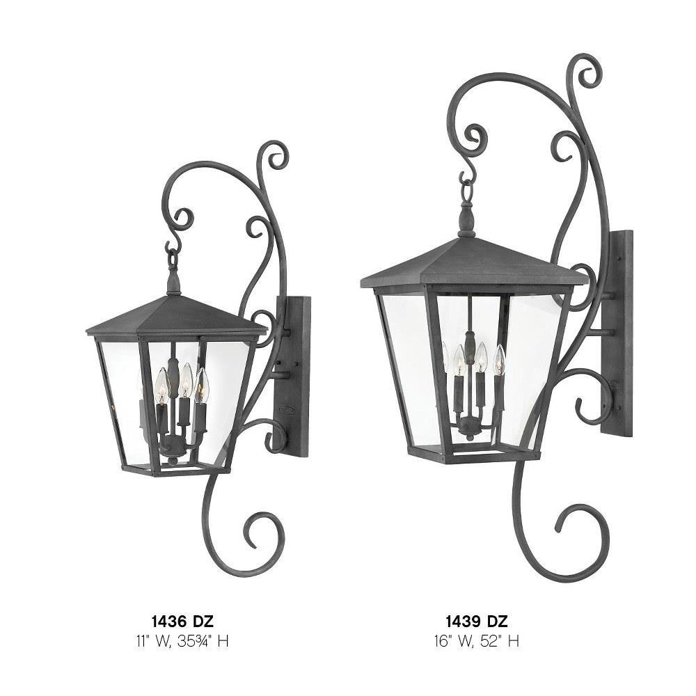 Trellis is a traditional European lantern design in an Aged Zinc finish with clear glass or Regency Bronze with clear seedy glass. The large scroll arm detail, cast loop finial and true rivet detail create a refined elegance.Our Estate Collections boast a breadth of fixtures defined by coordinating composition, enduring architecture, and time-honored craftsmanship, designed to meet the needs of expansive properties with extended outdoor living spaces. From the entrance of your driveway to the depths of your backyard, these collections provide cohesive design for stately exteriors. / Suitable for use in wet (outdoor direct rain or sprinkler) locations as defined by NEC and CEC. Meets United States UL Underwriters Laboratories & CSA Canadian Standards Association Product Safety Standards / Classic lines and heritage details complement traditional architecture / 2 year finish warranty / Bold and robust dark bronze finish