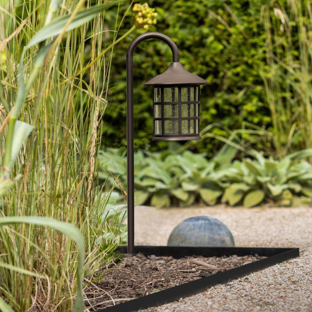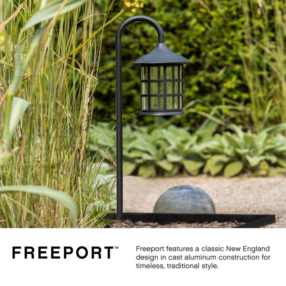 Designed specifically for coastal environments, the Freeport Coastal Elements 1.5W 1 LED Path Light combines durability with classic farmhouse aesthetics. Constructed from resilient composite resin materials and finished in a bold, dark bronze tone, this path light withstands harsh weather conditions, including direct exposure to rain and sprinklers. Its 12-volt LED bulb delivers a focused 150 lumen output, providing efficient illumination for outdoor pathways and landscape areas.
