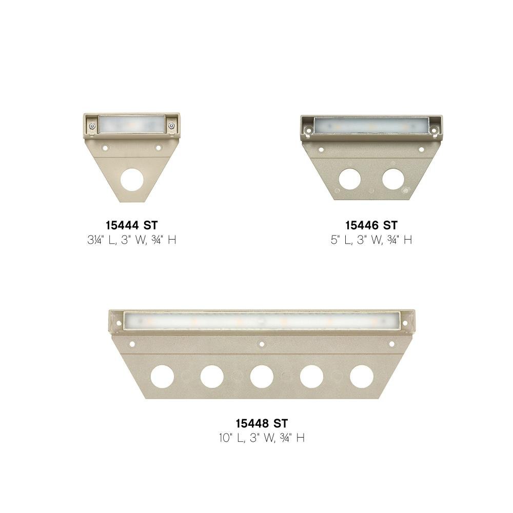 The Nuvi 1.9W LED Medium Deck Light offers a modern lighting solution designed for both indoor and outdoor applications. Measuring 5 inches wide by 0.75 inches high and 0.31 inches in depth, this compact fixture delivers 140 lumens of efficient, horizontal illumination. Its sleek silver patina finish and minimalist design integrate seamlessly with contemporary architectural styles, enhancing deck, step, and hardscape areas with subtle yet effective lighting.