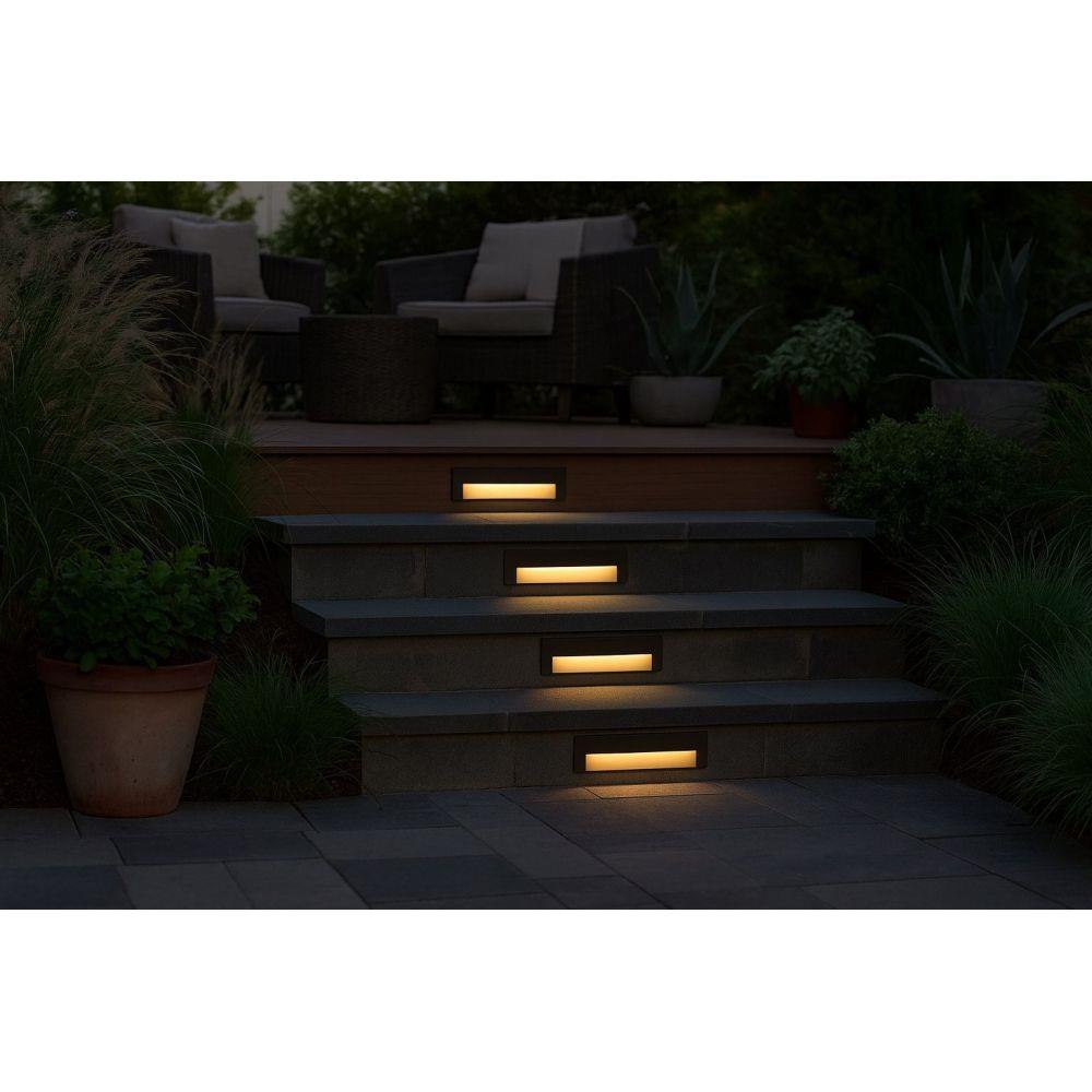The 1557SK fixture operates on low voltage, enhancing safety for outdoor applications. Its compact dimensions and flush mounting design allow it to be installed efficiently on various surfaces, reducing the number of fixtures needed to illuminate extensive areas. The aluminum body provides corrosion resistance, and the etched glass lens diffuses light evenly, minimizing glare. Compliance with NEC, CEC, UL, CSA, and ADA standards ensures the fixture meets rigorous safety and accessibility requirements. The dimmable LED feature supports versatile lighting control, suitable for both residential and commercial landscape lighting projects.