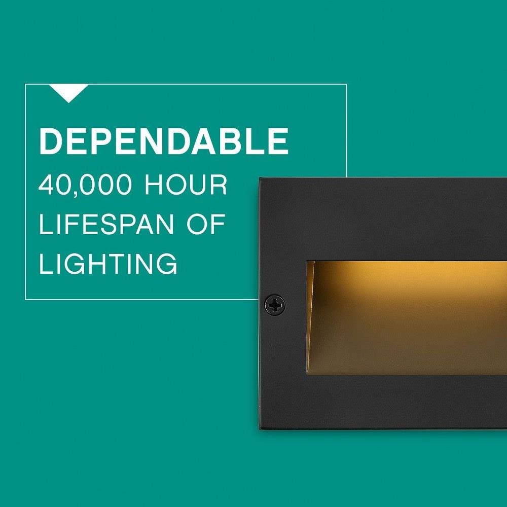 With dimensions of 3.25 inches in height, 1 inch in width, and 1 inch in length, the compact rectangular profile of the fixture features a recessed mount with a subtle 1/8-inch deep bezel. The fixture is ADA compliant, adhering to Americans with Disabilities Act guidelines, and is rated for both indoor and outdoor use. Installation is streamlined by the included wiring kit, enabling efficient setup with fewer fixtures required to illuminate larger areas. The fixture’s satin black finish enhances modern architectural designs with bold, clean lines and a minimalist aesthetic.