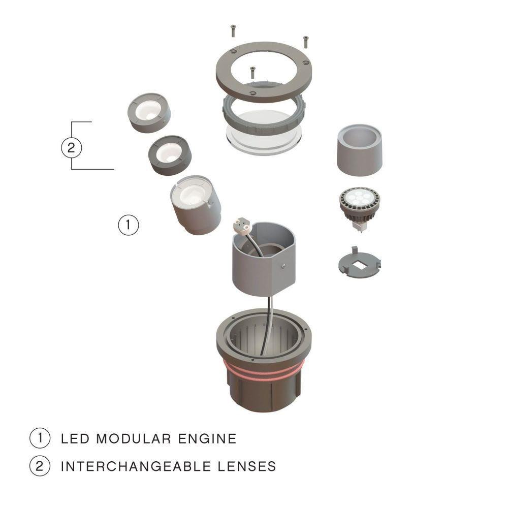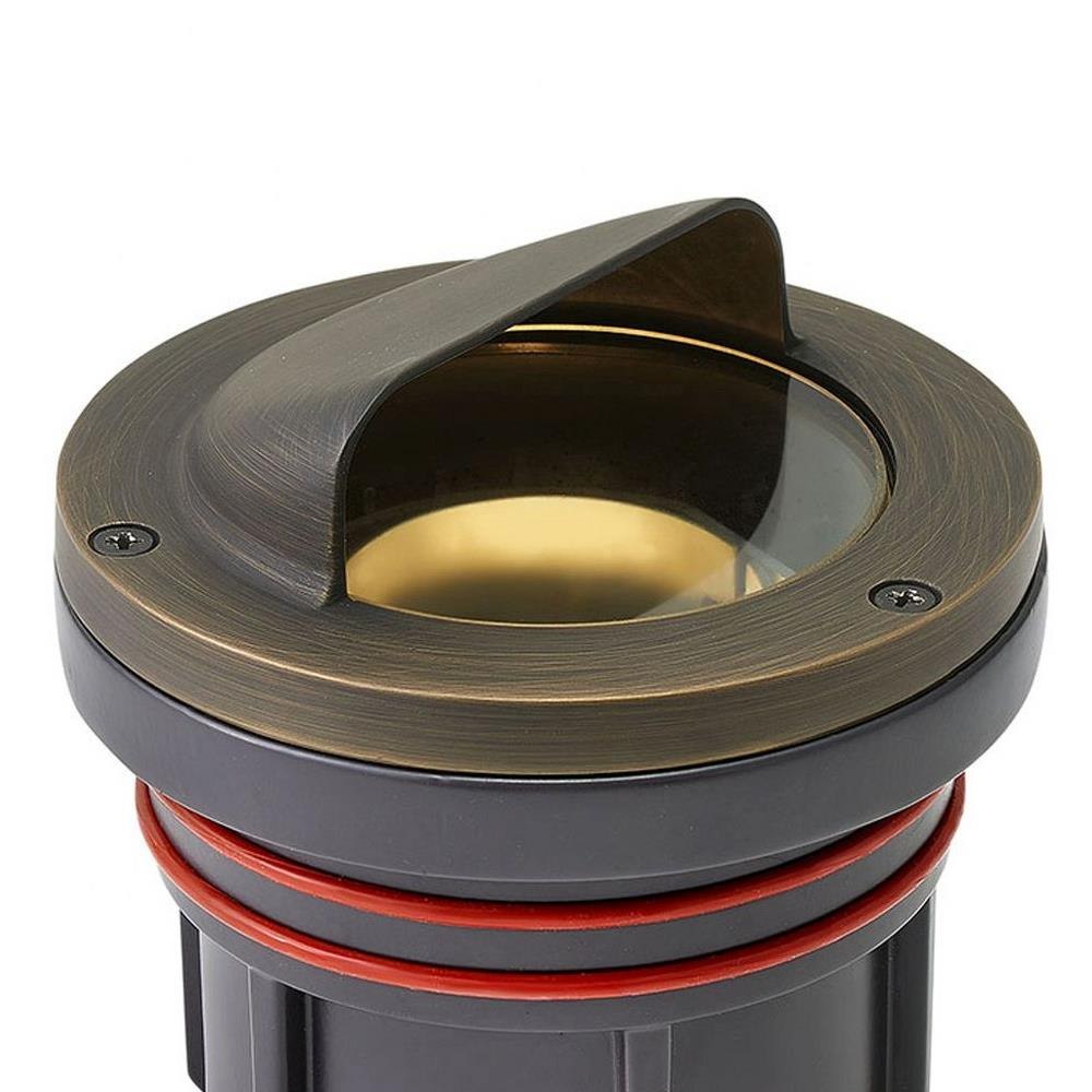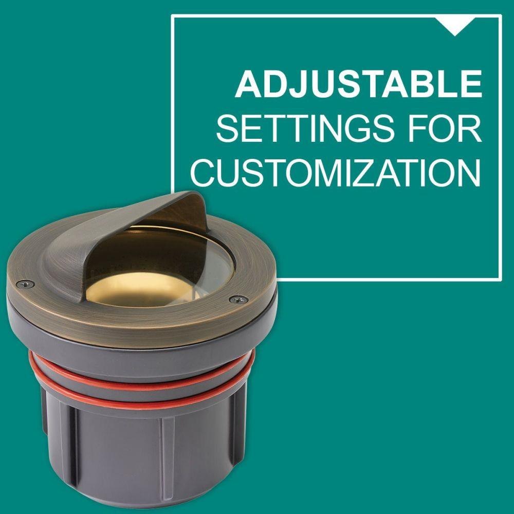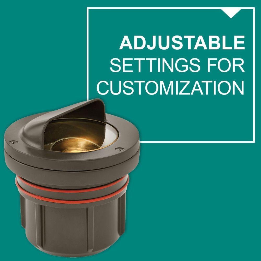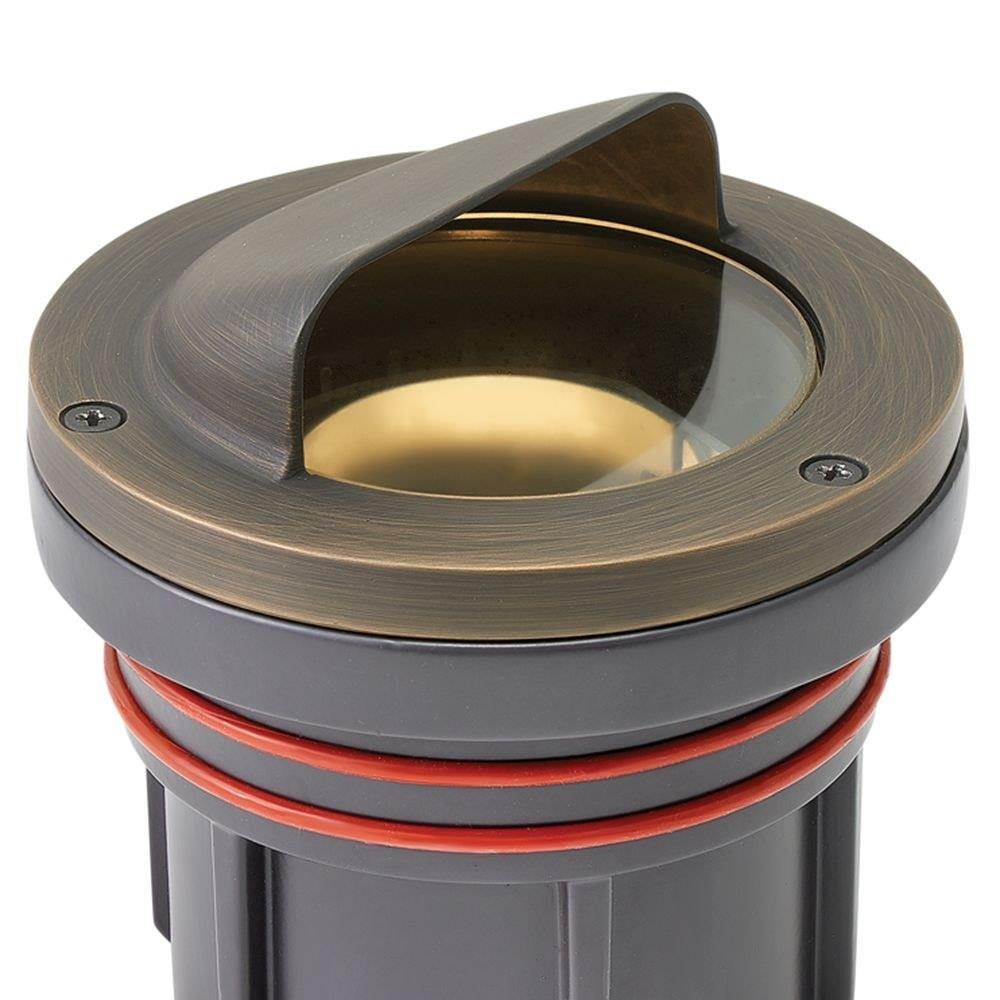 This landscape well light includes a PVC-constructed concrete pour kit and burial sleeve, facilitating secure and stable installation in concrete or soil. A dense foam cap is provided to prevent concrete ingress during installation. The fixture's design supports optimal drive-over protection, withstanding loads up to 4,500 pounds, making it suitable for driveways and pathways. The warm, rich light bronze finish enhances outdoor aesthetics while offering resistance to environmental elements.