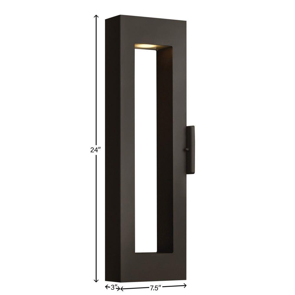 LED components carry a 5-year limited warranty / Meets California Energy Commission 2013 & 2016 Title regulations/JA8 / Suitable for use in wet (outdoor direct rain or sprinkler) locations as defined by NEC and CEC. Meets United States UL Underwriters Laboratories & CSA Canadian Standards Association Product Safety Standards / 2 year finish warranty / Equipped with a 120/277 universal driver. 0-10 dimming. / Bold lines and a clean, minimalist style complement contemporary architecture / Warm rich light bronze tone / Fixture is Dark Sky compliant and engineered to minimize light glare upward into the night sky