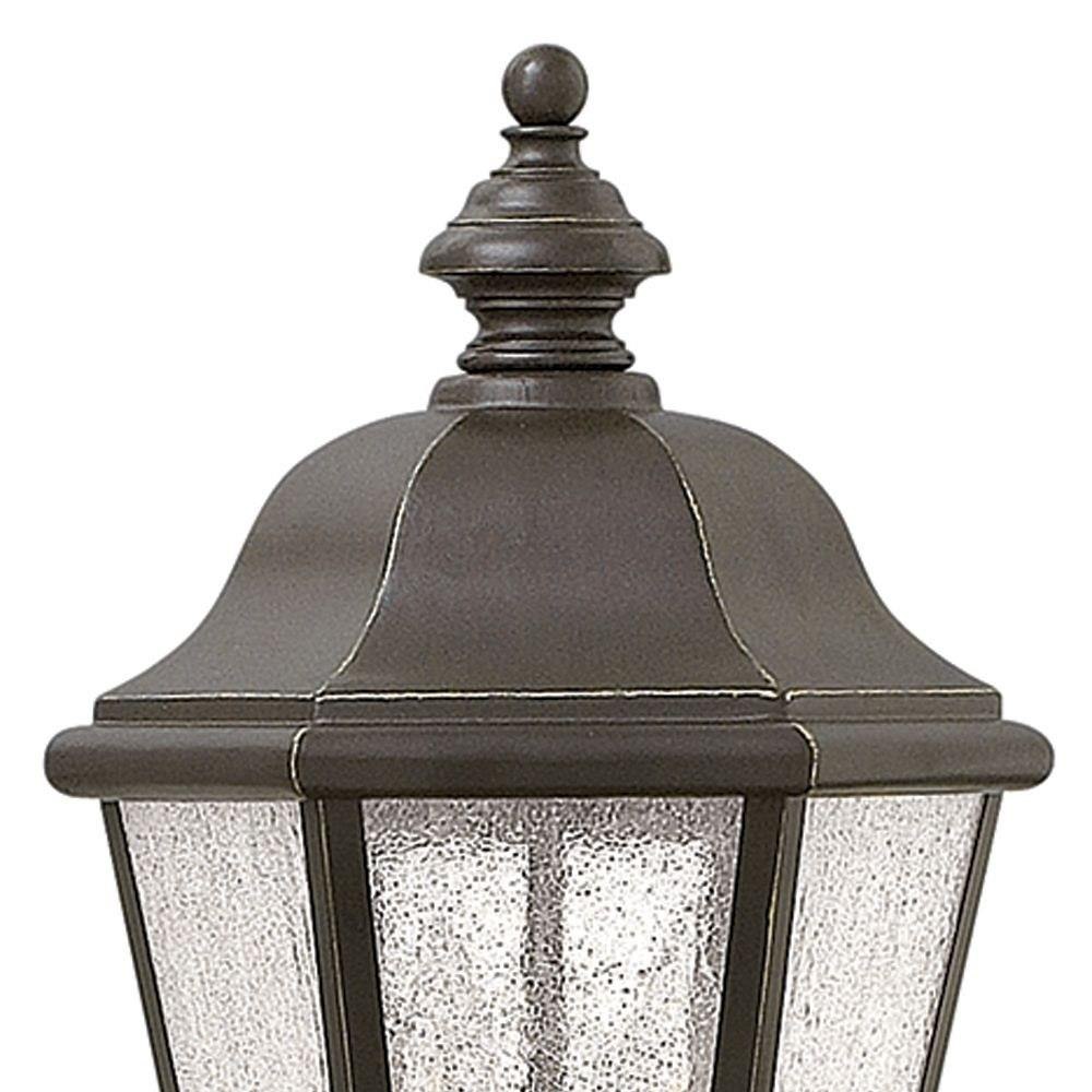 Edgewater's classic design features durable cast aluminum and brass construction in a rich Black or Oil Rubbed Bronze finish with clear seedy glass.