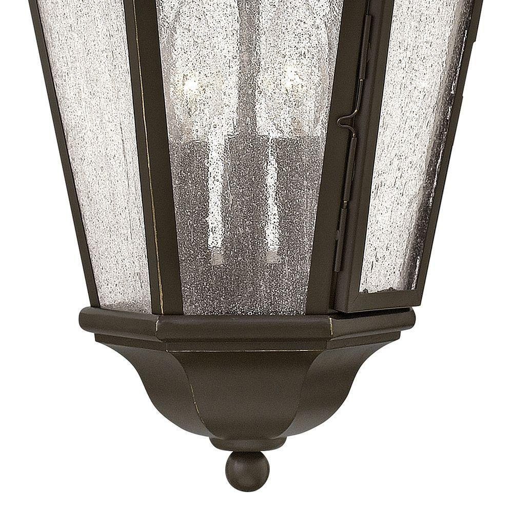 Edgewater's classic design features durable cast aluminum and brass construction in a rich Black or Oil Rubbed Bronze finish with clear seedy glass.