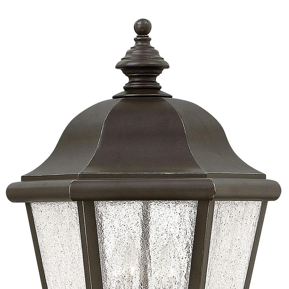 Edgewater's classic design features durable cast aluminum and brass construction in a rich Black or Oil Rubbed Bronze finish with clear seedy glass.
