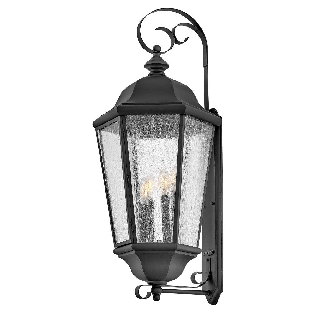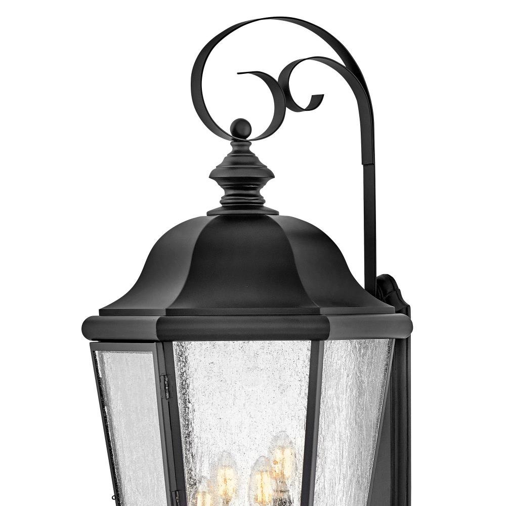 Edgewater's classic design features a durable cast aluminum and brass construction in a rich Black finish with clear seedy glass.