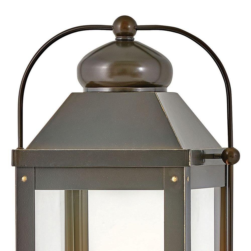 Anchorage is an early American lantern design crafted of solid aluminum to reflect a bold yet refined silhouette. The Aged Zinc or Light Oiled Bronze finish and clear glass complement the long clean lines, elegant arched carriage handle and sturdy knobs, resulting in a vintage style with classic charisma.Innovative Exterior 12-volt solution for all-in-one lamp, lighting and high design look. Transformer is required and sold separately. / Our Estate Collections boast a breadth of fixtures defined by coordinating composition, enduring architecture, and time-honored craftsmanship, designed to meet the needs of expansive properties with extended outdoor living spaces. From the entrance of your driveway to the depths of your backyard, these collections provide cohesive design for stately exteriors. / Suitable for use in wet (outdoor direct rain or sprinkler) locations as defined by NEC and CEC. Meets United States UL Underwriters Laboratories & CSA Canadian Standards Association Product Safety Standards / LED Bulbs carry a 3-year limited warranty / Classic lines and heritage details complement traditional architecture / 12-volt LED vintage filament bulbs included / 2 year finish warranty / Images are for reference purpose only and may not be pictured with the specified LED filament bulb. / Variety of stylish fixtures customized with vintage filament bulbs / Offers low voltage semi-permanent solutions for unique areas such as pergolas when paired with low voltage Hinkley transformer / The Heritage Collection encompasses premium outdoor fixtures that pay tribute to the nostalgia of America's past while reinforcing Hinkley's philosophy of timeless, quality design. / Warm rich light bronze tone