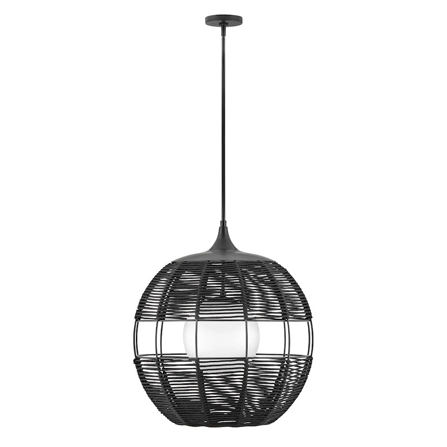 Hinkley Lighting Maddox 1 Light Outdoor Orb Pendant, Black/Etched Opal - 19675BK