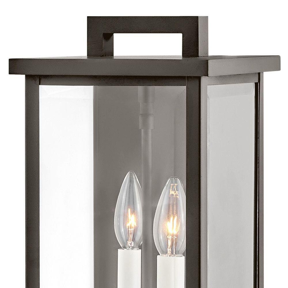 Modernize your outdoor space without sacrificing the traditional appeal you long for. Weymouth's subtle yet overstated frame features a clean design, while its symmetrical lines evoke timeless elegance with a contemporary edge. The contrast candle sleeves in warm white balance the robust aluminum cast frame. The beveled glass is an elegant touch to help refract the light.