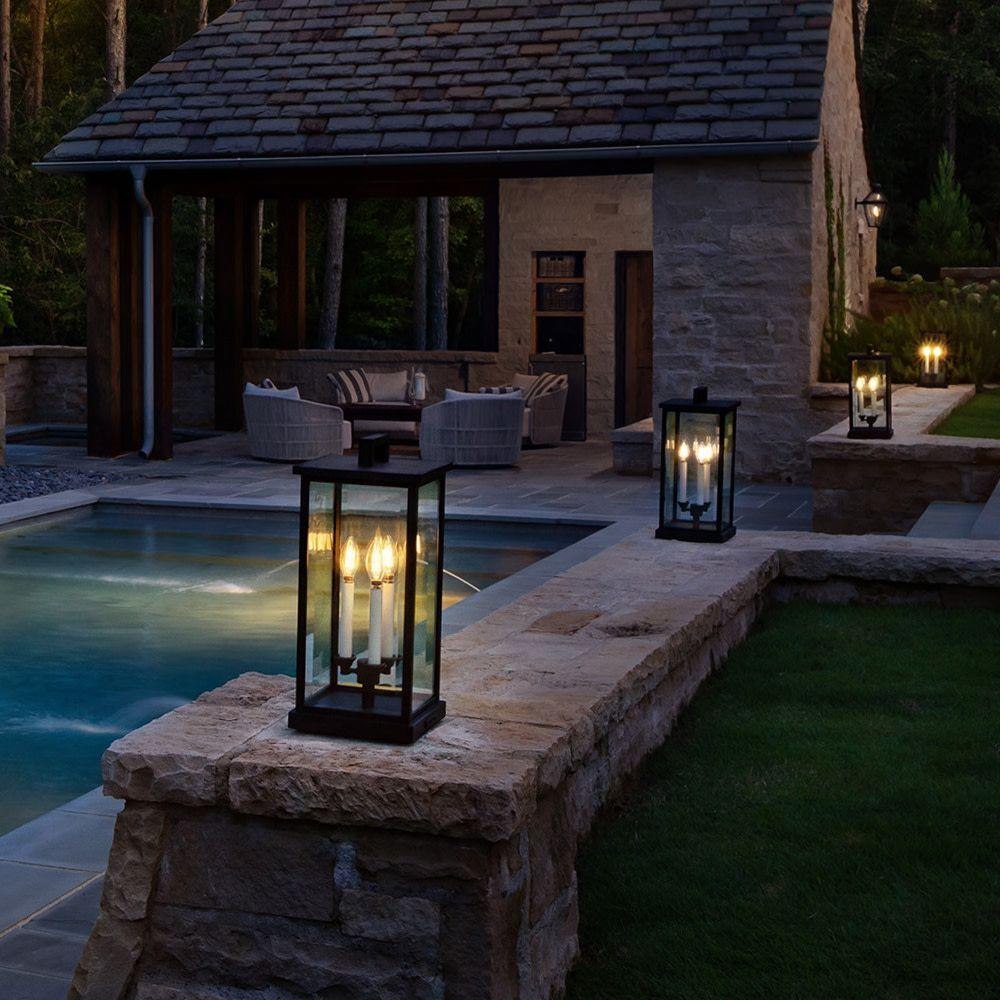Innovative Exterior 12-volt LED and 120-volt Incandescent solution for all-in-one lamp, lighting and high design look. Transformer is required and sold separately. / Our Estate Collections boast a breadth of fixtures defined by coordinating composition, enduring architecture, and time-honored craftsmanship, designed to meet the needs of expansive properties with extended outdoor living spaces. From the entrance of your driveway to the depths of your backyard, these collections provide cohesive design for stately exteriors. / Suitable for use in wet (outdoor direct rain or sprinkler) locations as defined by NEC and CEC. Meets United States UL Underwriters Laboratories & CSA Canadian Standards Association Product Safety Standards / LED Bulbs carry a 3-year limited warranty / Classic lines and heritage details complement traditional architecture / Striking black finish enhances design / vintage filament bulbs included / 2 year finish warranty / Images are for reference purpose only and may not be pictured with the specified LED filament bulb. / Variety of stylish fixtures customized with vintage filament bulbs / Offers low voltage semi-permanent solutions for unique areas such as pergolas when paired with low voltage Hinkley transformer