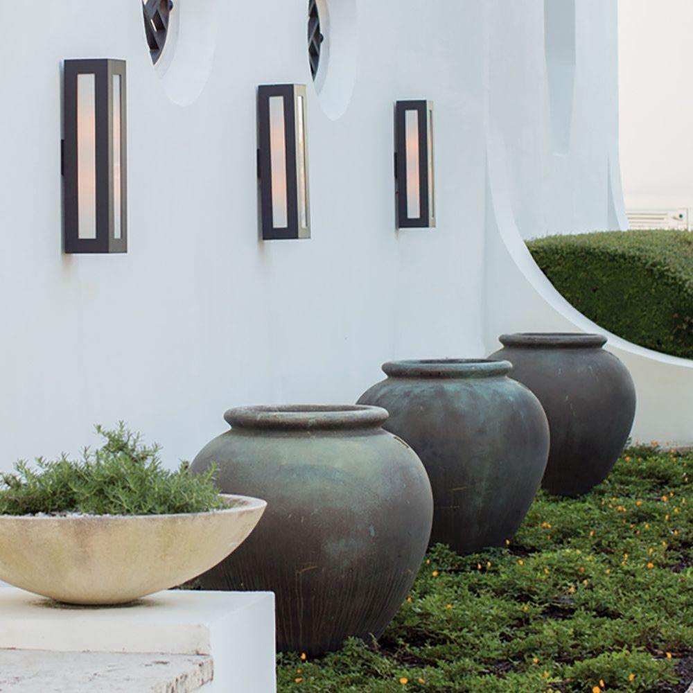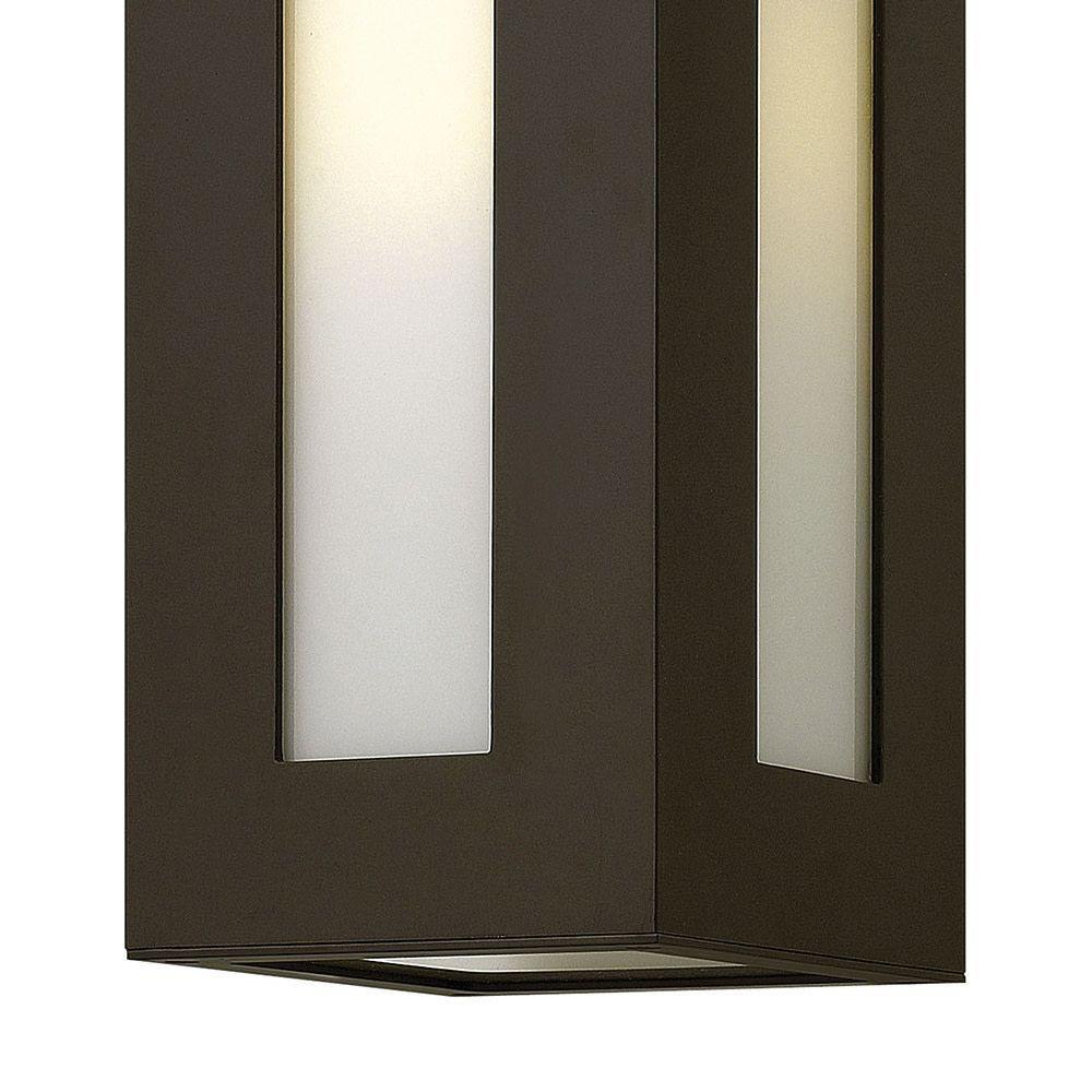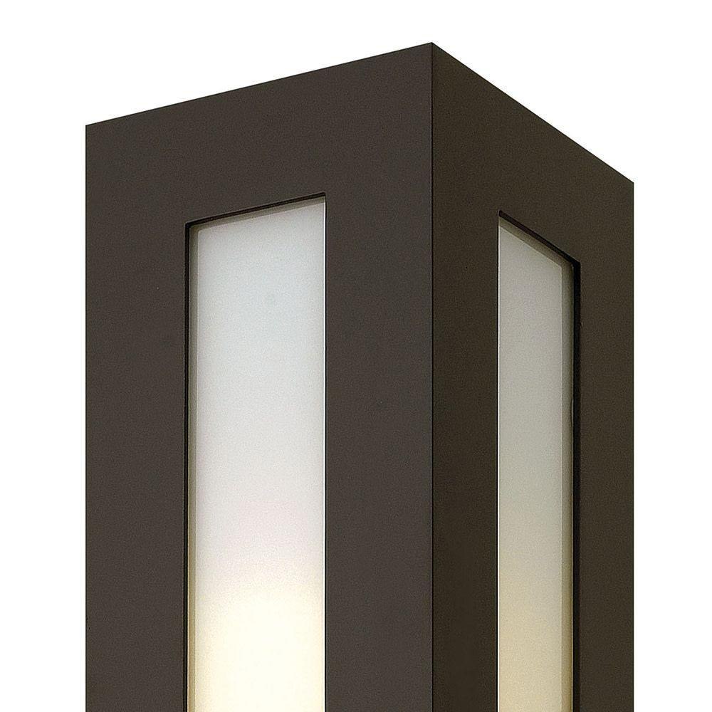Dorian’s robust design in durable aluminum construction is offered in a Bronze finish. This contemporary fixture allows light to emit from white glass windows.LED components carry a 5-year limited warranty / Meets California Energy Commission 2013 & 2016 Title regulations/JA8 / Suitable for use in wet (outdoor direct rain or sprinkler) locations as defined by NEC and CEC. Meets United States UL Underwriters Laboratories & CSA Canadian Standards Association Product Safety Standards / 2 year finish warranty / Bold lines and a clean, minimalist style complement contemporary architecture / Warm rich light bronze tone