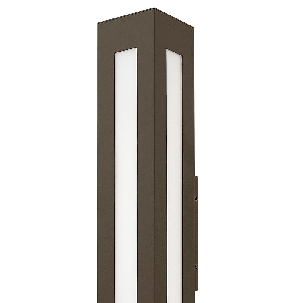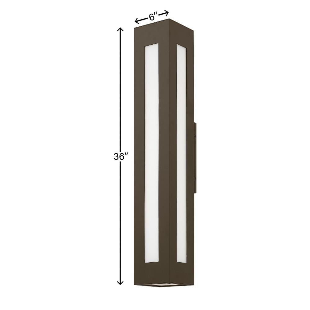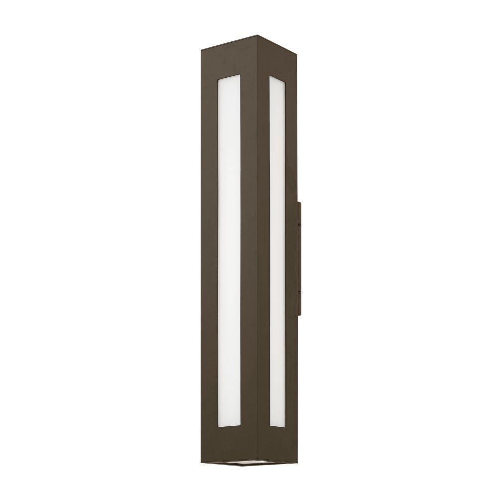 Dorian’s robust design in durable aluminum construction is offered in a Bronze finish. This contemporary fixture allows light to emit from white glass windows.LED components carry a 5-year limited warranty / Meets California Energy Commission 2013 & 2016 Title regulations/JA8 / Suitable for use in wet (outdoor direct rain or sprinkler) locations as defined by NEC and CEC. Meets United States UL Underwriters Laboratories & CSA Canadian Standards Association Product Safety Standards / 2 year finish warranty / Bold lines and a clean, minimalist style complement contemporary architecture / Warm rich light bronze tone