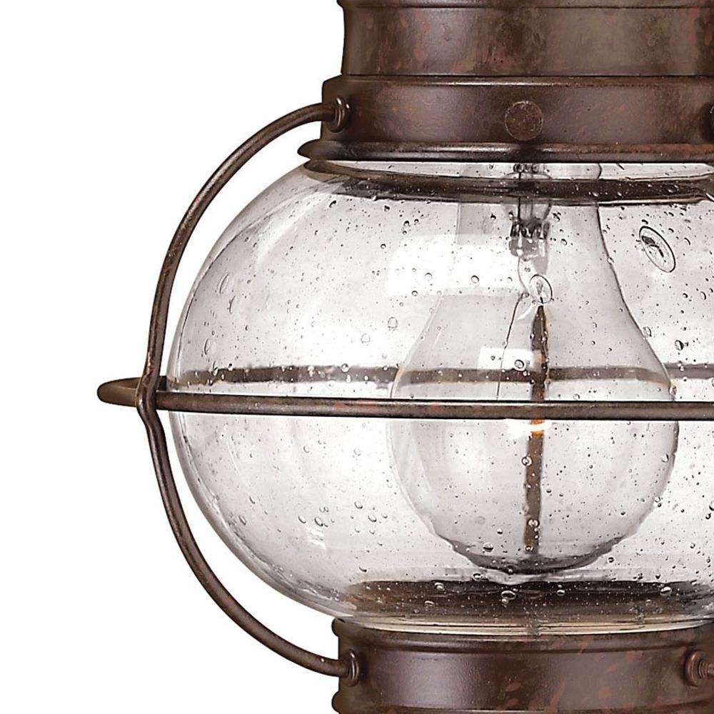 Cape Cod’s classic onion lantern design conveys New England style. Bold caged lines highlight the sturdy profile, while the clear seedy glass adds to the vintage appeal.