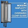 Striking and airy, Catalina breathes modern simplicity into outdoor spaces. Oversized clear glass, a unique single socket, and a two-tone Black with Burnished Bronze finish pair perfectly to present a statement making fixture. The finishing touch is a floating effect created by the classic rectangular lantern design suspended from a top knob.