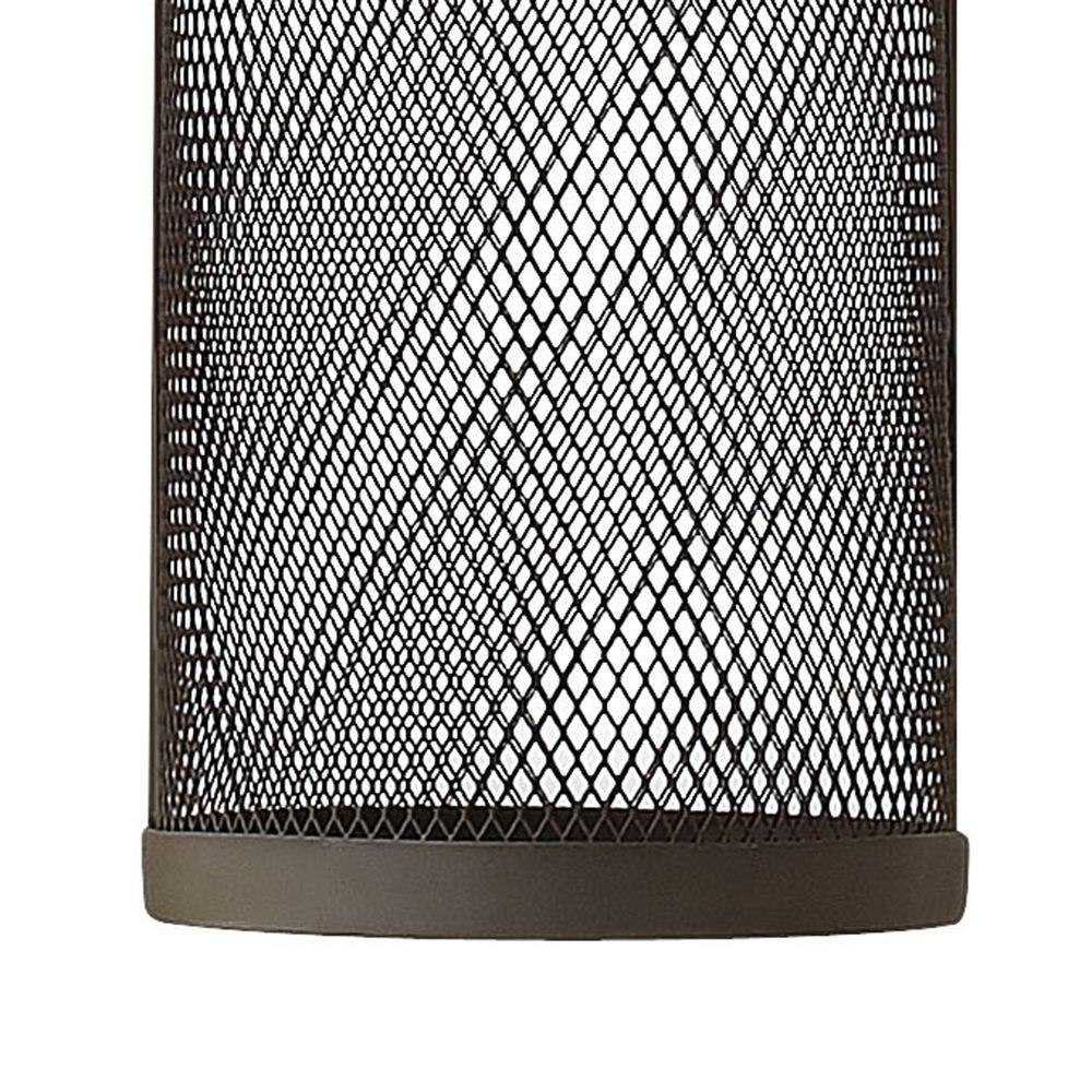 Aria is a contemporary style that effortlessly complements the facade of any exterior. Its modern shape in durable aluminum is enhanced by a stainless steel mesh shade. Aria's high style and low maintenance comes standard Dark Sky compliant.This fixture includes multiple down stems in various lengths to customize the installation height of the fixture, including one 6" stem and two 12" stems. / Angular lines, a bold finish and robust details create an industrial edge to add flair to any type of façade / Suitable for use in damp locations as defined by NEC and CEC. Meets United States UL Underwriters Laboratories & CSA Canadian Standards Association Product Safety Standards / This stem hung fixture may be hung on a sloped ceiling / LED Bulbs carry a 3-year limited warranty / Striking black finish enhances design / 2 year finish warranty / All-in-one fixture design comes with an LED bulb / Fixture is Dark Sky compliant and engineered to minimize light glare upward into the night sky