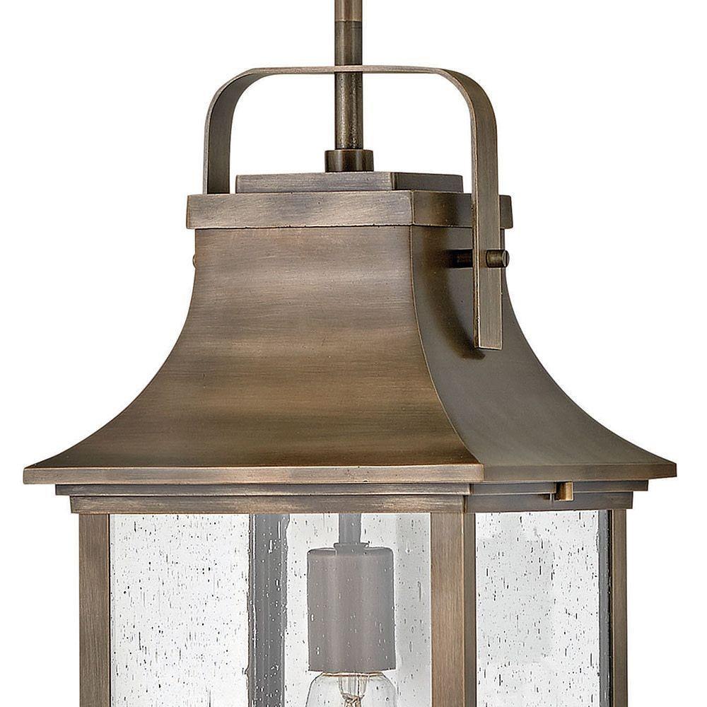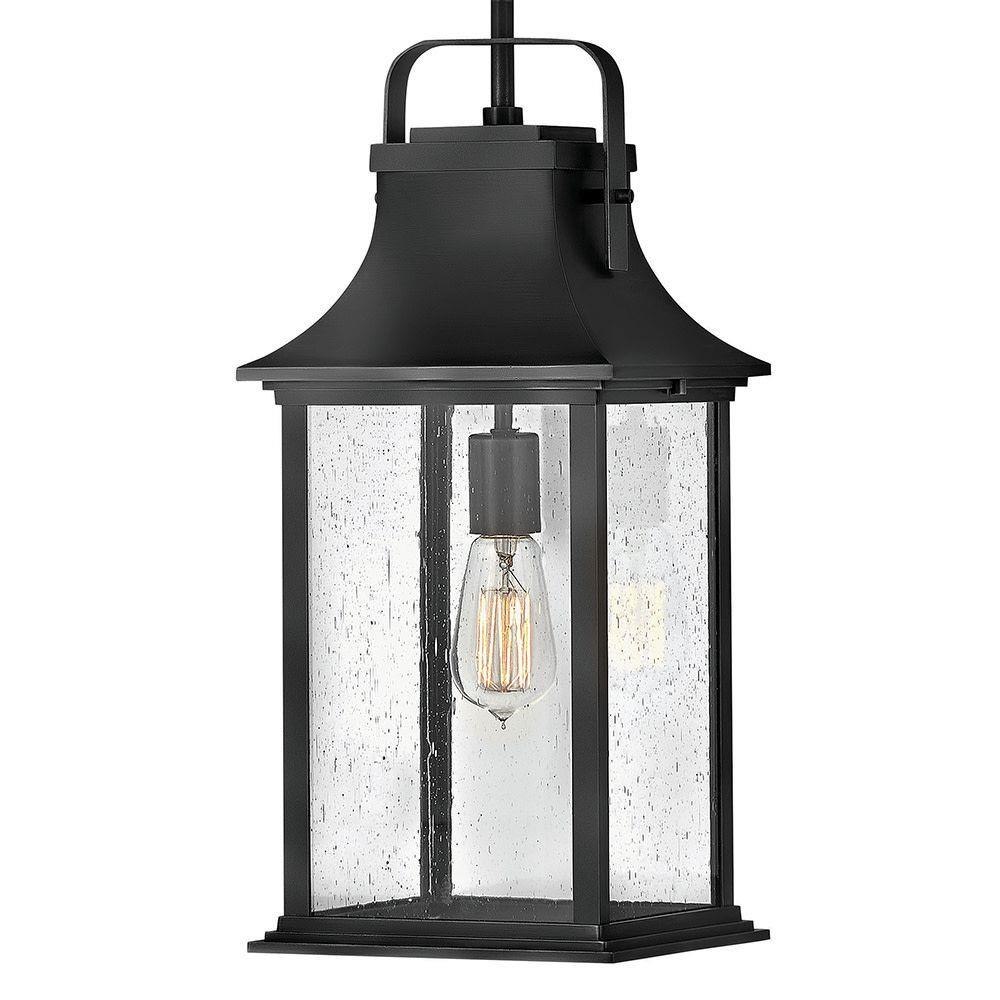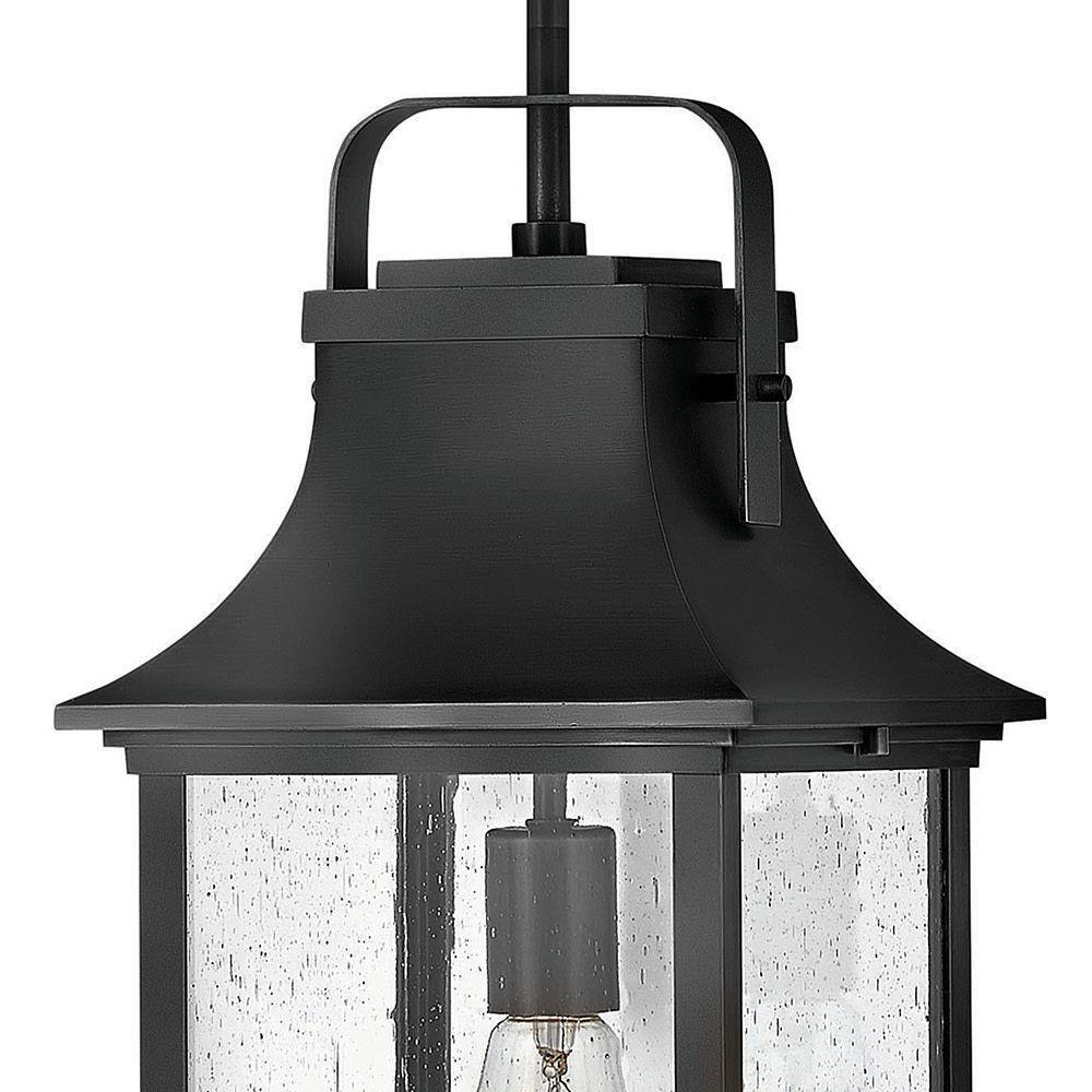 Grant is chic and polished, cutting a fresh yet dignified silhouette with an emphasis on refined details. Its curved sweeping roof and oversized handle boldly anchor the clear seedy glass panels. The luxe Burnished Bronze or Textured Black finish options enhance its genteel, timeless appearance.Suitable for use in damp locations as defined by NEC and CEC. Meets United States UL Underwriters Laboratories & CSA Canadian Standards Association Product Safety Standards / This stem hung fixture may be hung on a sloped ceiling / Classic lines and heritage details complement traditional architecture / 2 year finish warranty / Ideal for vintage filament bulbs (not included) / Warm rich light bronze tone