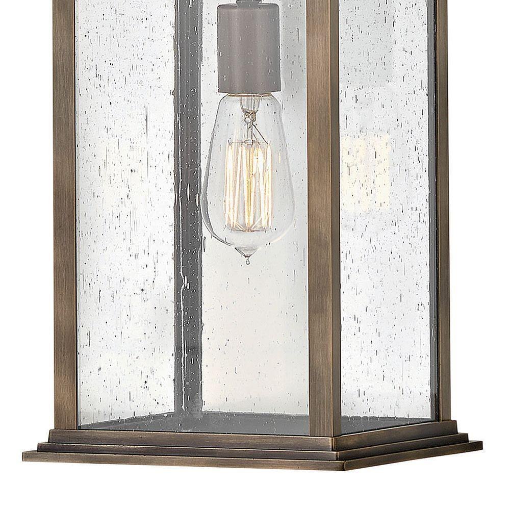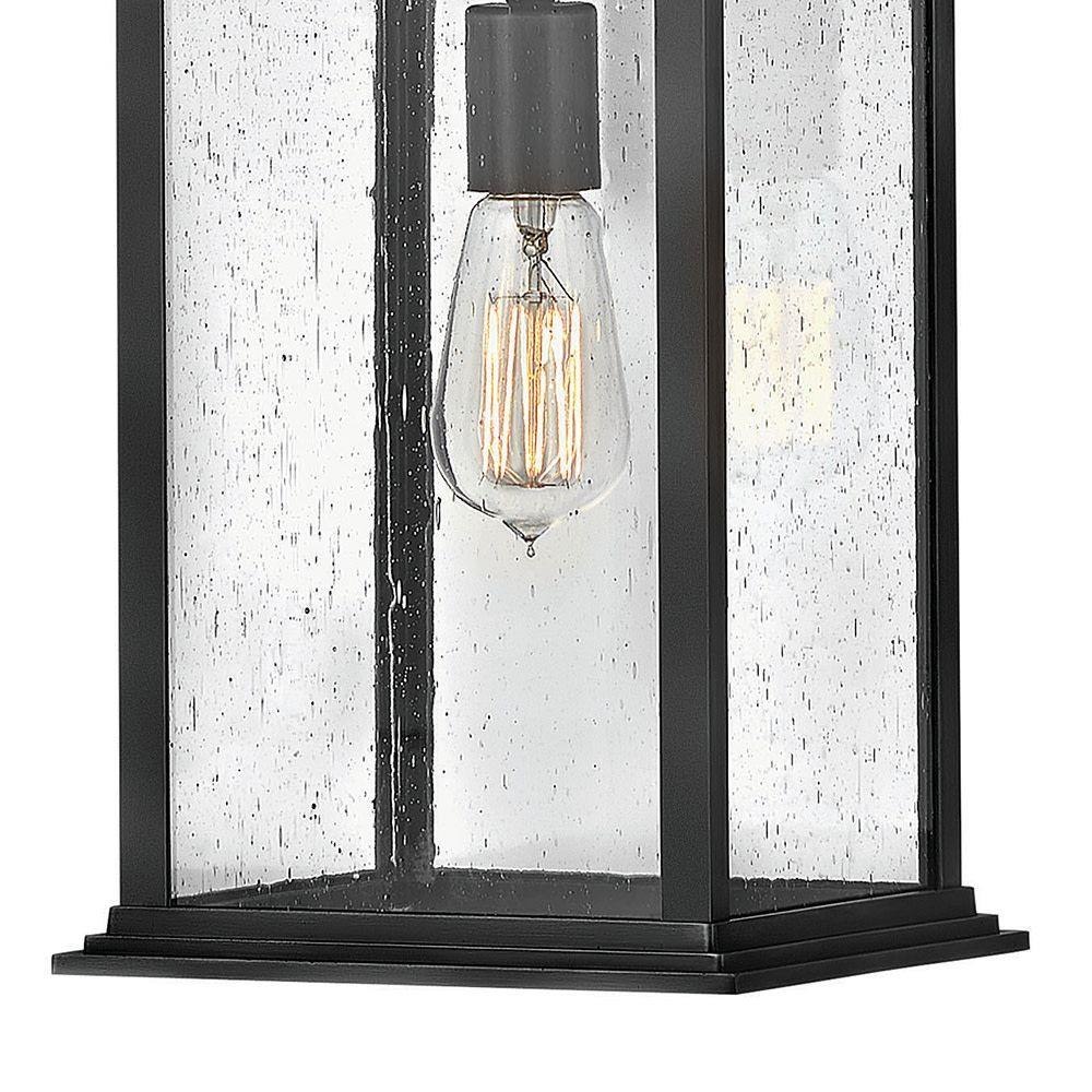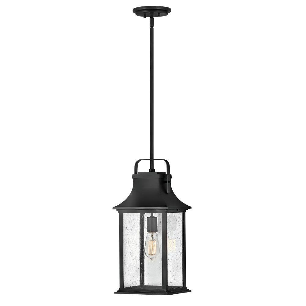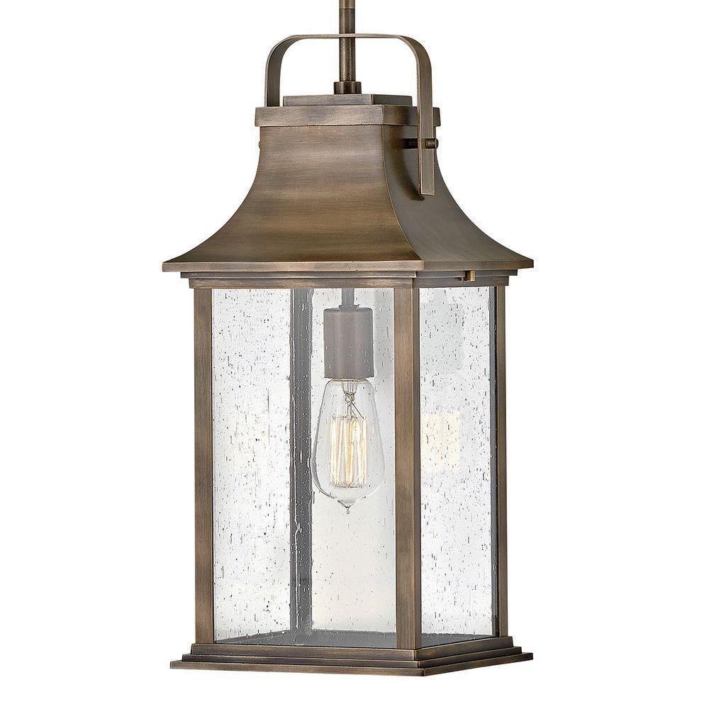 Grant is chic and polished, cutting a fresh yet dignified silhouette with an emphasis on refined details. Its curved sweeping roof and oversized handle boldly anchor the clear seedy glass panels. The luxe Burnished Bronze or Textured Black finish options enhance its genteel, timeless appearance.Suitable for use in damp locations as defined by NEC and CEC. Meets United States UL Underwriters Laboratories & CSA Canadian Standards Association Product Safety Standards / This stem hung fixture may be hung on a sloped ceiling / Classic lines and heritage details complement traditional architecture / 2 year finish warranty / Ideal for vintage filament bulbs (not included) / Warm rich light bronze tone