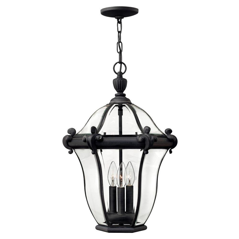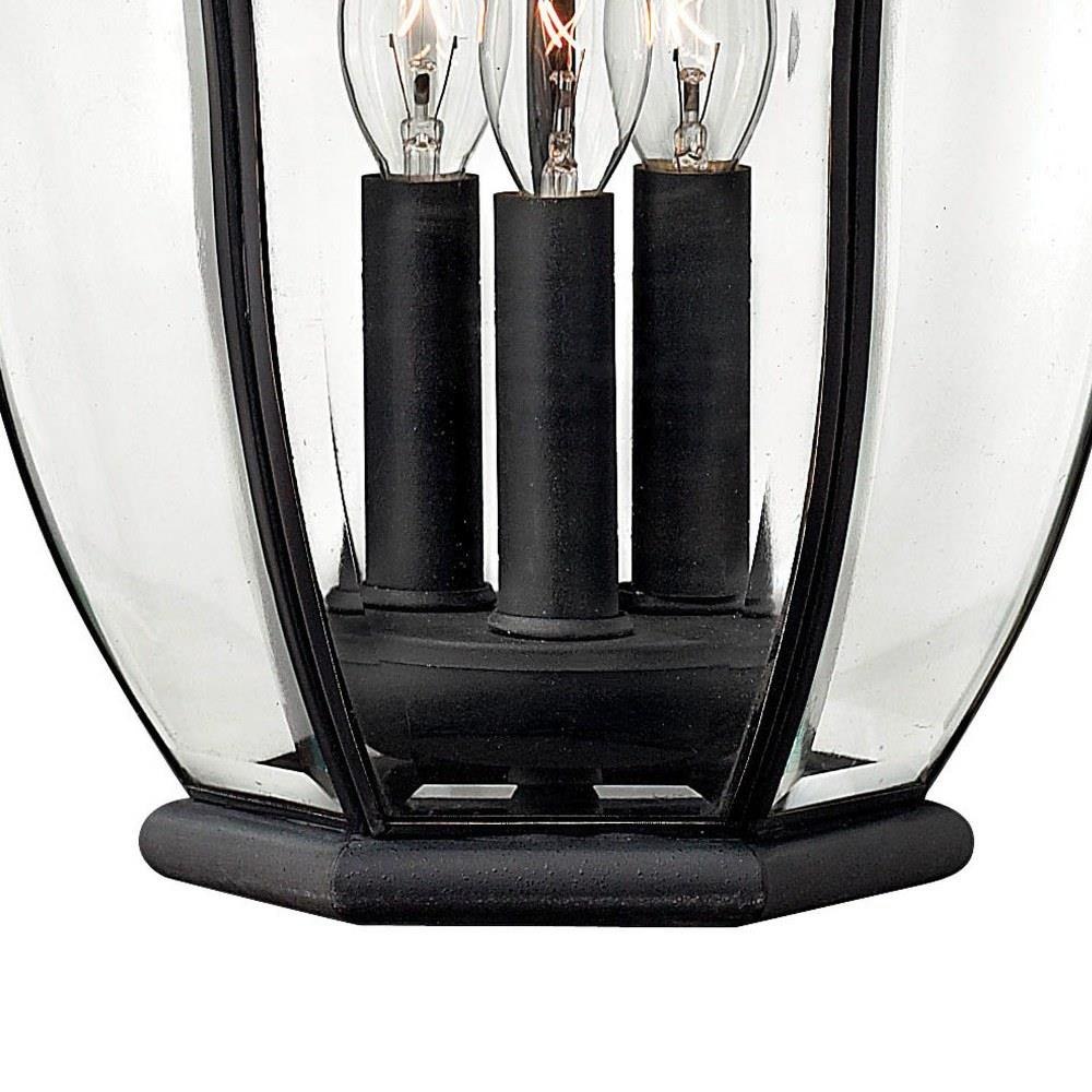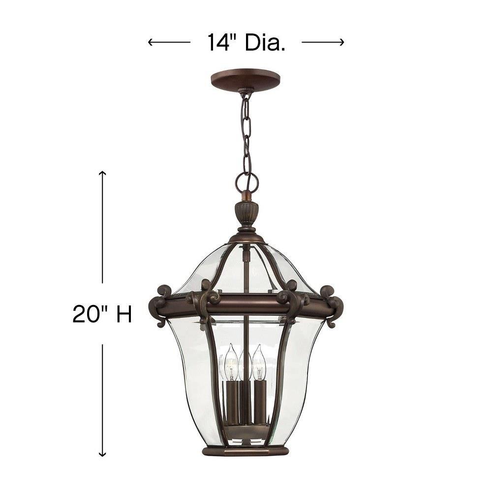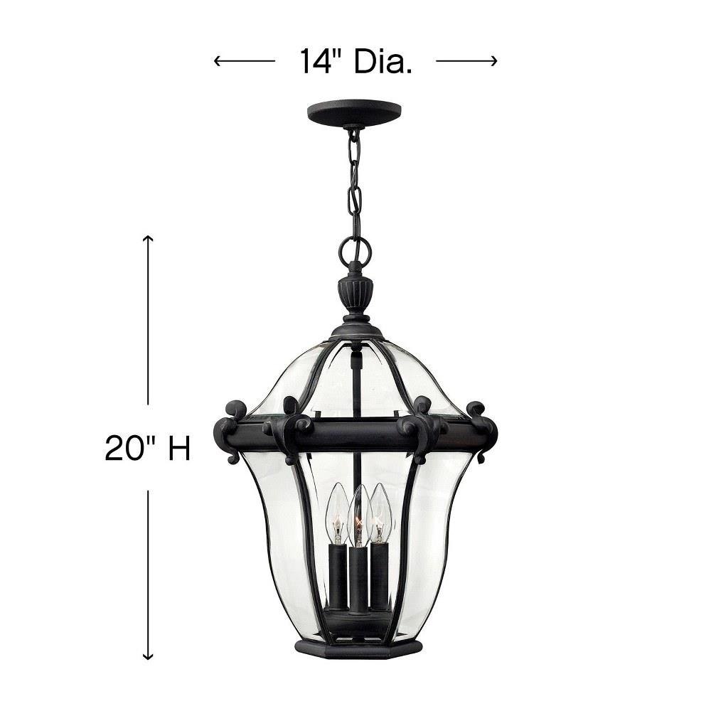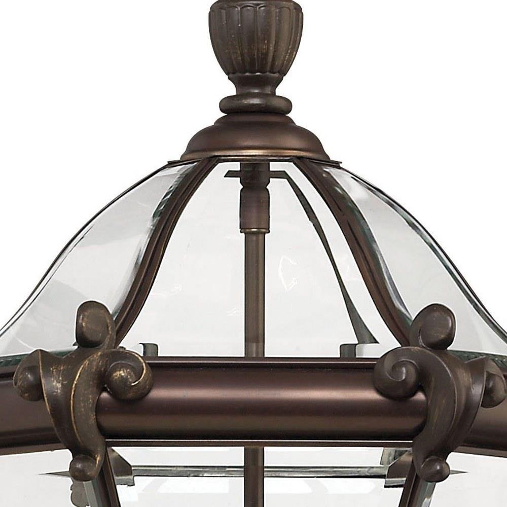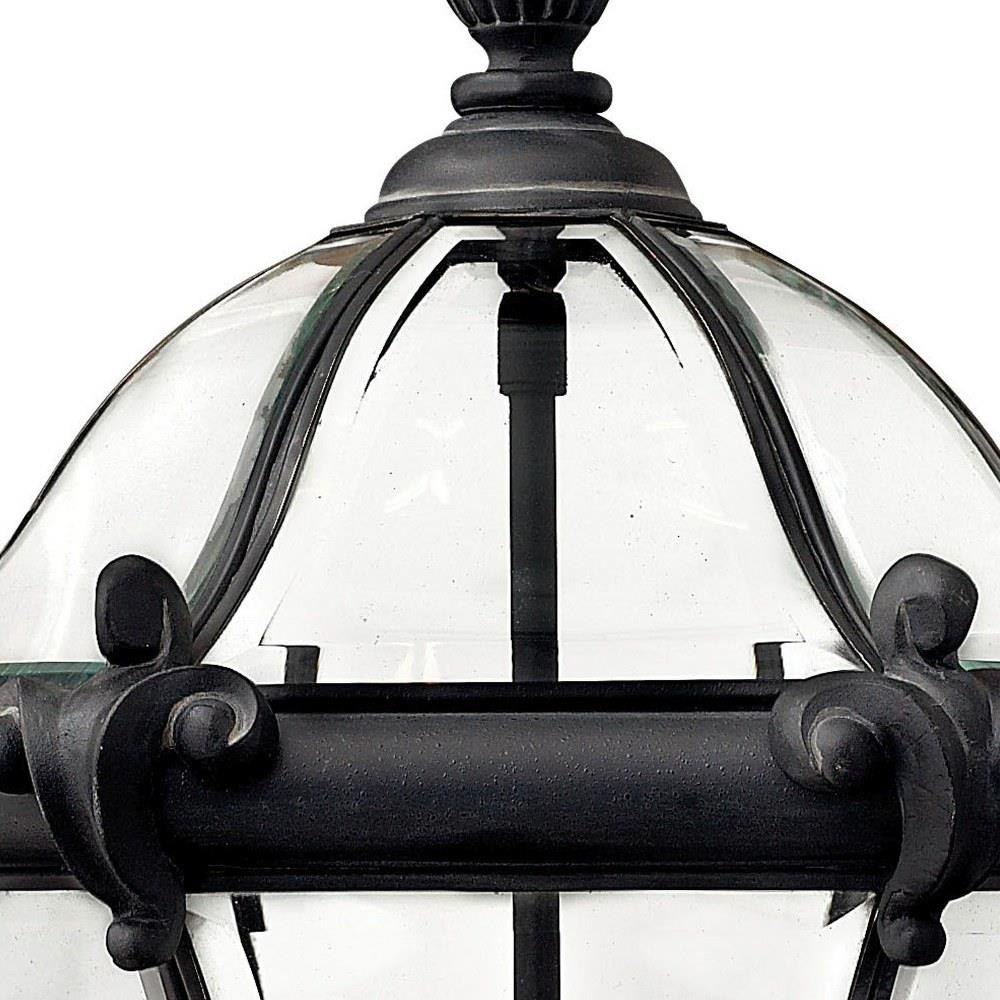 San Clemente’s elegant shape takes center stage with clear bent, beveled and bound glass as the central design element. Cast aluminum and brass construction complemented by exquisite cast ornamental detailing completes its captivating appeal.This chain or cable hung fixture may be installed on any sloped ceiling / Suitable for use in damp locations as defined by NEC and CEC. Meets United States UL Underwriters Laboratories & CSA Canadian Standards Association Product Safety Standards / Our Estate Collections boast a breadth of fixtures defined by coordinating composition, enduring architecture, and time-honored craftsmanship, designed to meet the needs of expansive properties with extended outdoor living spaces. From the entrance of your driveway to the depths of your backyard, these collections provide cohesive design for stately exteriors. / Classic lines and heritage details complement traditional architecture / 2 year finish warranty / Bold and robust dark bronze finish