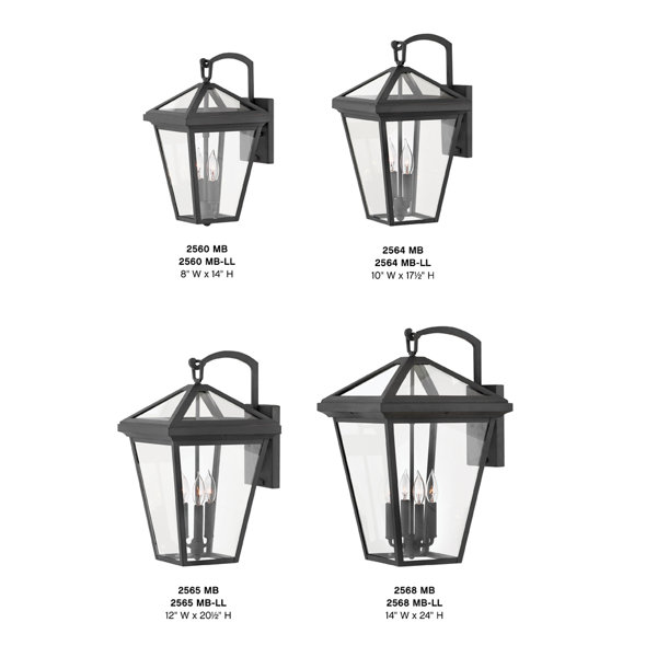 This Traditional medium outdoor LED wall lantern is a bold beacon near entryways - porches, garages, decks - increasing curb appeal, safety, and security. A tapered exterior light fixture with a colonial-style candle socket, illuminated by (2) 4w Candelabra LED bulbs (included). Enjoy maximum illumination through the large glass side panels and roof. This precision die-cast aluminum frame reflects the enduring architecture and craftsmanship in a heritage finial and hook at the top of the lantern.