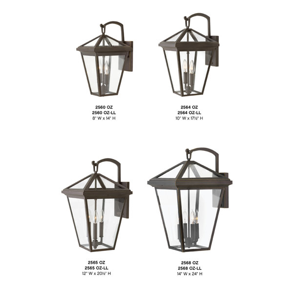 This Traditional large outdoor LED wall lantern is a bold beacon near entryways - porches, garages, decks - increasing curb appeal, safety, and security. A tapered exterior light fixture with a colonial-style candle socket, illuminated by (3) 4w Candelabra LED bulbs (included). Enjoy maximum illumination through the large glass side panels and roof. This precision die-cast aluminum frame reflects the enduring architecture and craftsmanship in a heritage finial and hook at the top of the lantern.