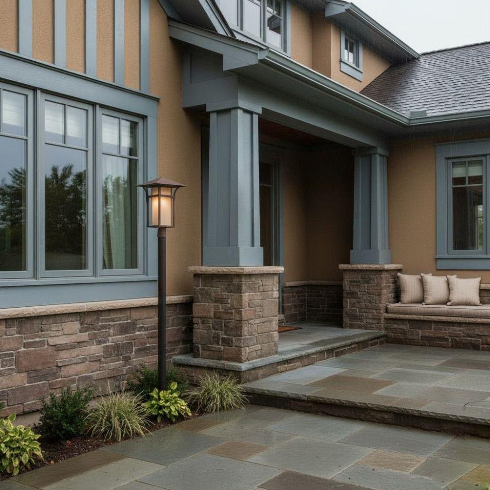 LED components carry a 5-year limited warranty / Meets California Energy Commission 2013 & 2016 Title regulations/JA8 / Our Estate Collections boast a breadth of fixtures defined by coordinating composition, enduring architecture, and time-honored craftsmanship, designed to meet the needs of expansive properties with extended outdoor living spaces. From the entrance of your driveway to the depths of your backyard, these collections provide cohesive design for stately exteriors. / Suitable for use in wet (outdoor direct rain or sprinkler) locations as defined by NEC and CEC. Meets United States UL Underwriters Laboratories & CSA Canadian Standards Association Product Safety Standards / 2 year finish warranty / Streamlined forms, robust finishes and symmetrical details complement Craftsman facades / Warm rich light bronze tone