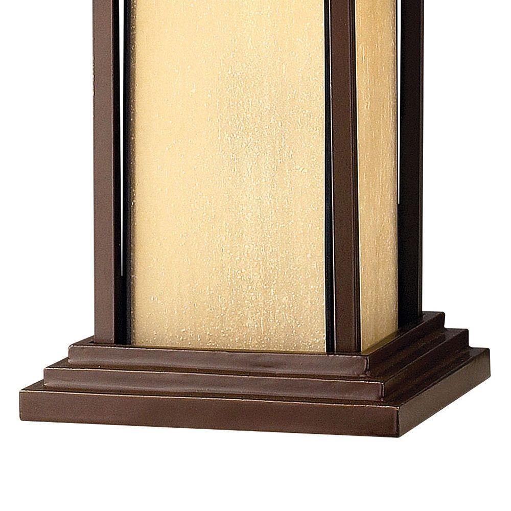 Innovative Exterior 12-volt solution for all-in-one lamp, lighting and high design look. Transformer is required and sold separately. / Our Estate Collections boast a breadth of fixtures defined by coordinating composition, enduring architecture, and time-honored craftsmanship, designed to meet the needs of expansive properties with extended outdoor living spaces. From the entrance of your driveway to the depths of your backyard, these collections provide cohesive design for stately exteriors. / Suitable for use in wet (outdoor direct rain or sprinkler) locations as defined by NEC and CEC. Meets United States UL Underwriters Laboratories & CSA Canadian Standards Association Product Safety Standards / LED Bulbs carry a 3-year limited warranty / 12-volt LED vintage filament bulbs included / 2 year finish warranty / Images are for reference purpose only and may not be pictured with the specified LED filament bulb. / Variety of stylish fixtures customized with vintage filament bulbs / Offers low voltage semi-permanent solutions for unique areas such as pergolas when paired with low voltage Hinkley transformer / Streamlined forms, robust finishes and symmetrical details complement Craftsman facades / Warm rich light bronze tone / Mounting bracket is provided.