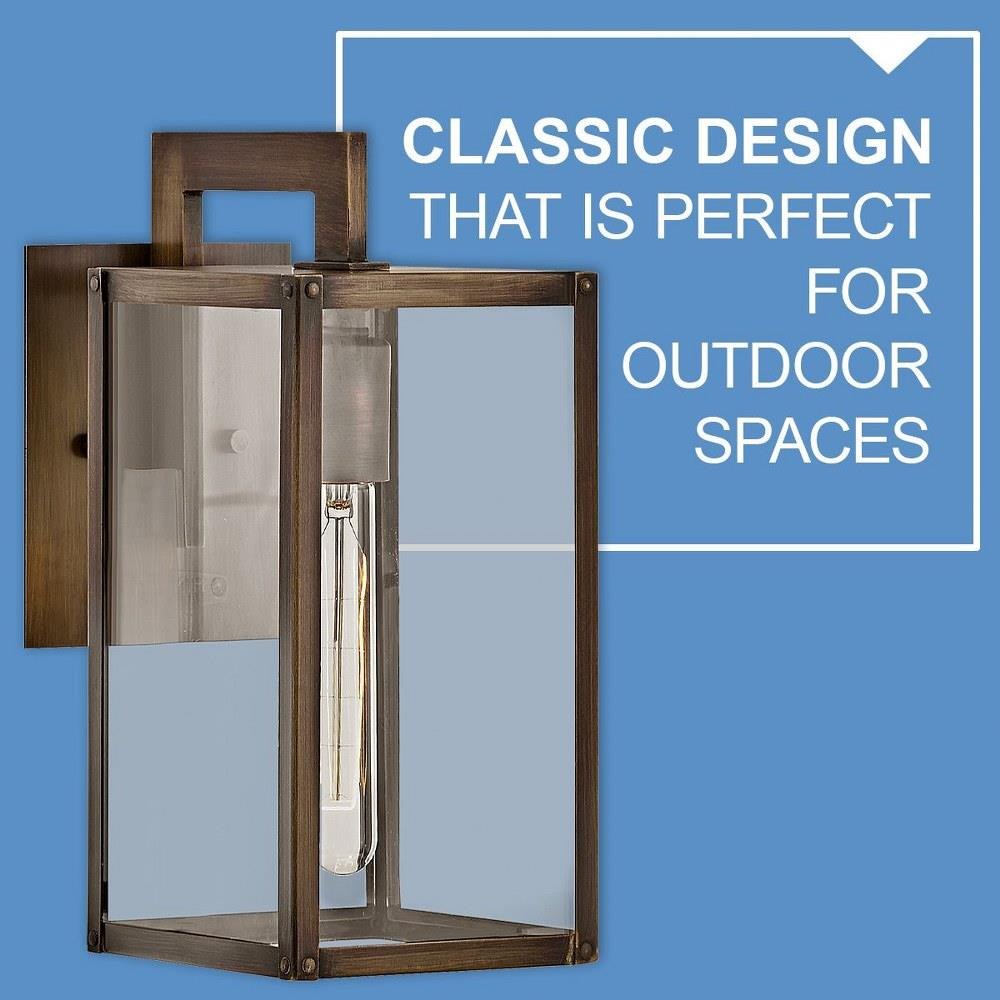 Suitable for use in wet (outdoor direct rain or sprinkler) locations as defined by NEC and CEC. Meets United States UL Underwriters Laboratories & CSA Canadian Standards Association Product Safety Standards / 2 year finish warranty / Ideal for vintage filament bulbs (not included) / Sophisticated and streamlined design, durable construction and timeless finish complement any architectural style / Warm rich light bronze tone