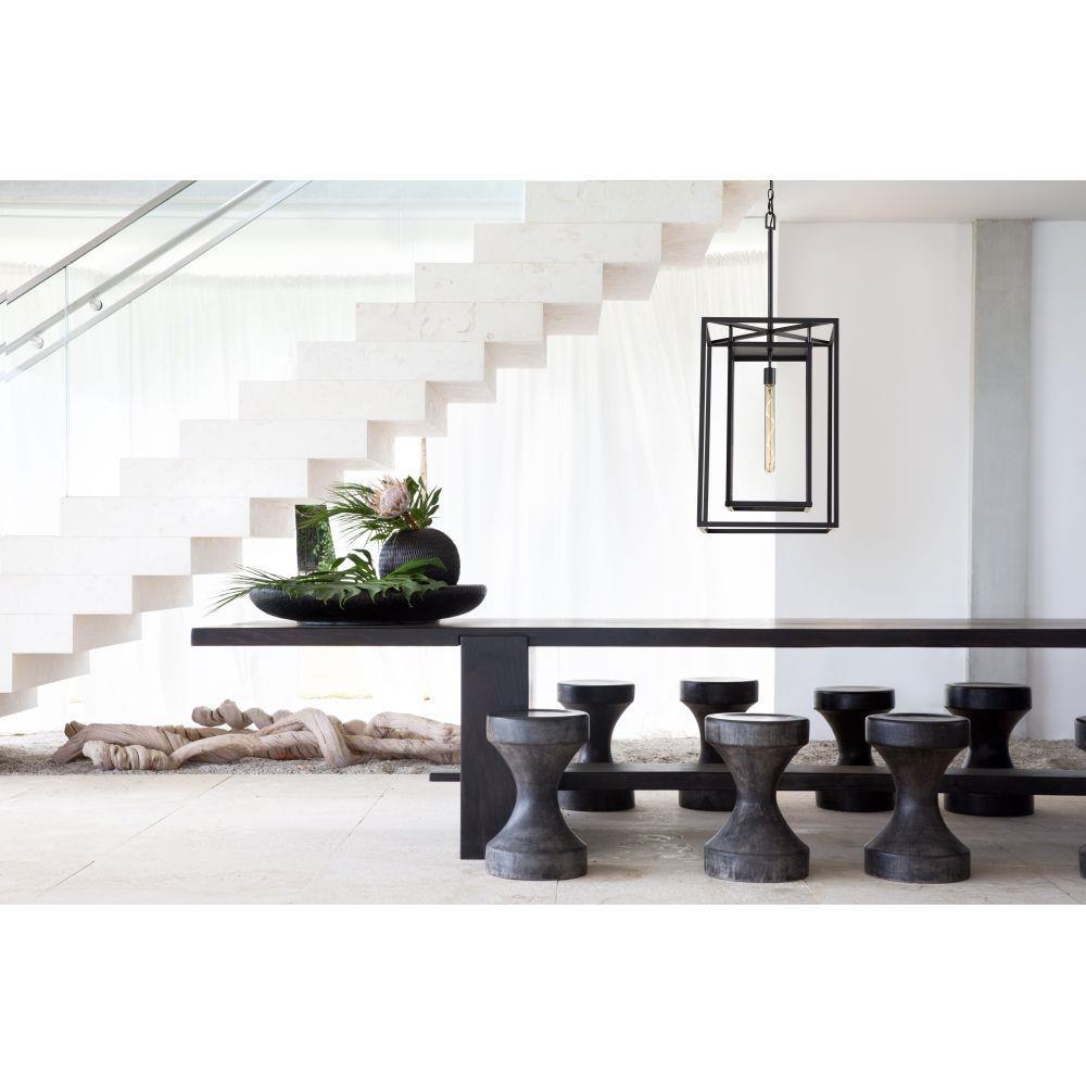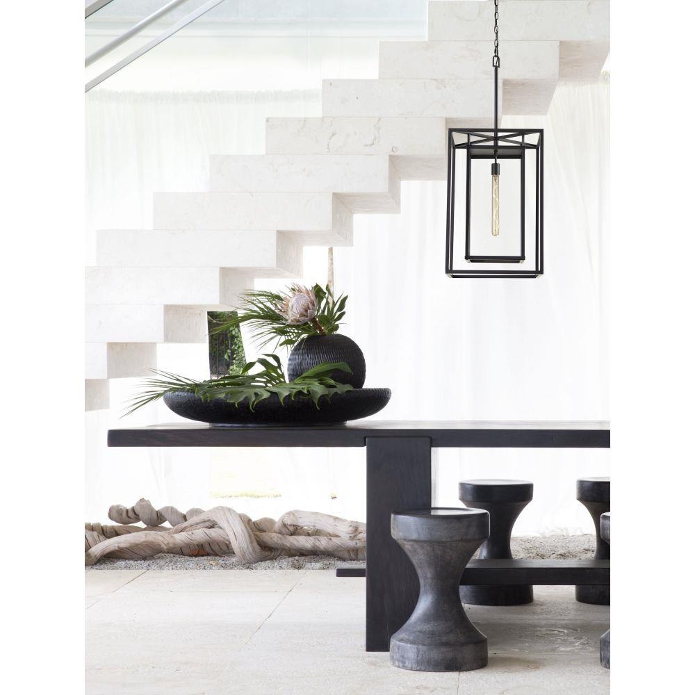 This chain or cable hung fixture may be installed on any sloped ceiling / Suitable for use in wet (outdoor direct rain or sprinkler) locations as defined by NEC and CEC. Meets United States UL Underwriters Laboratories & CSA Canadian Standards Association Product Safety Standards / The stylish Open Air collection includes outdoor-rated chandeliers, pendants and sconces that provide design-conscious solutions to a variety of exterior environments. / LED Bulbs carry a 3-year limited warranty / Striking black finish enhances design / Bold lines and a clean, minimalist style complement contemporary architecture