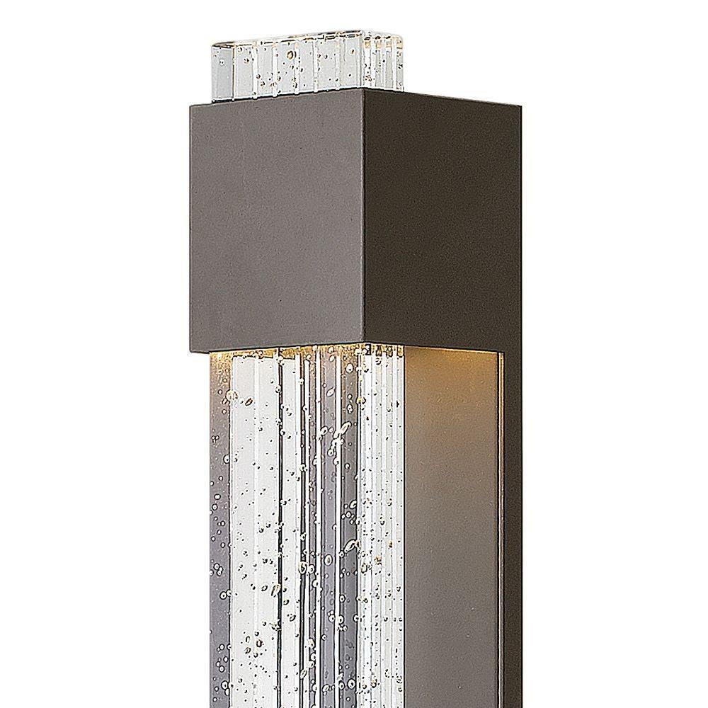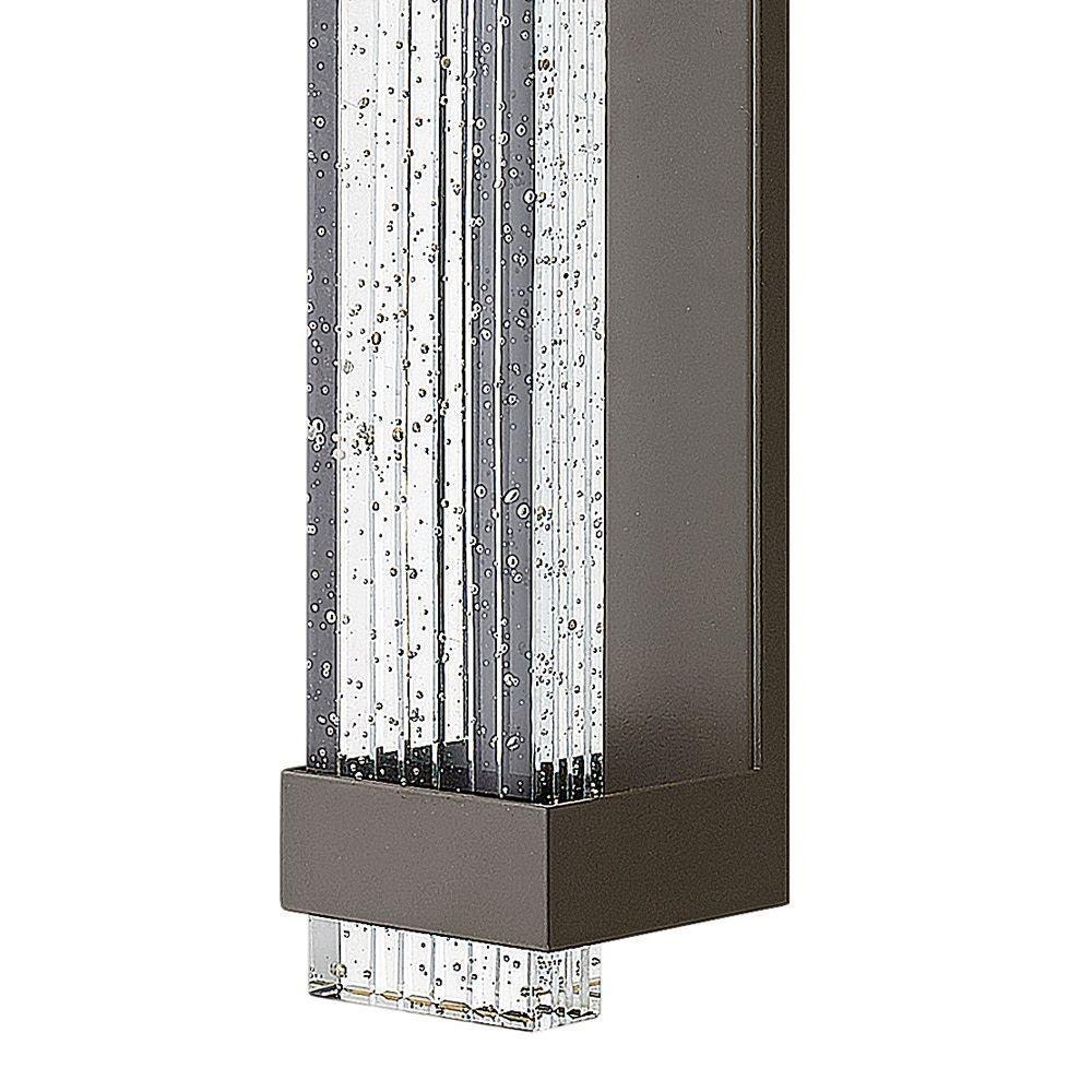 Glacier’s impressive form merges industrial and contemporary design elements into a breath-taking silhouette. A substantial block of clear seedy glass with etched grooves brilliantly channels light from the high-performance LED, which is held in suspension by the powder-coated aluminum frame.Rich gray tone / LED components carry a 5-year limited warranty / Meets California Energy Commission 2013 & 2016 Title regulations/JA8 / Suitable for use in wet (outdoor direct rain or sprinkler) locations as defined by NEC and CEC. Meets United States UL Underwriters Laboratories & CSA Canadian Standards Association Product Safety Standards / 2 year finish warranty / Fixture is ADA compliant and adheres to the standards and guidelines listed by the Americans with Disabilities Act / Exclusively available in High Performance LED / Bold lines and a clean, minimalist style complement contemporary architecture / Mounting hardware is hidden on the backplate to ensure a clean silhouette