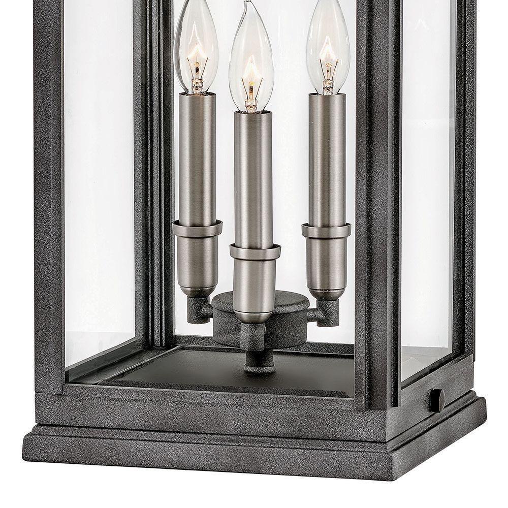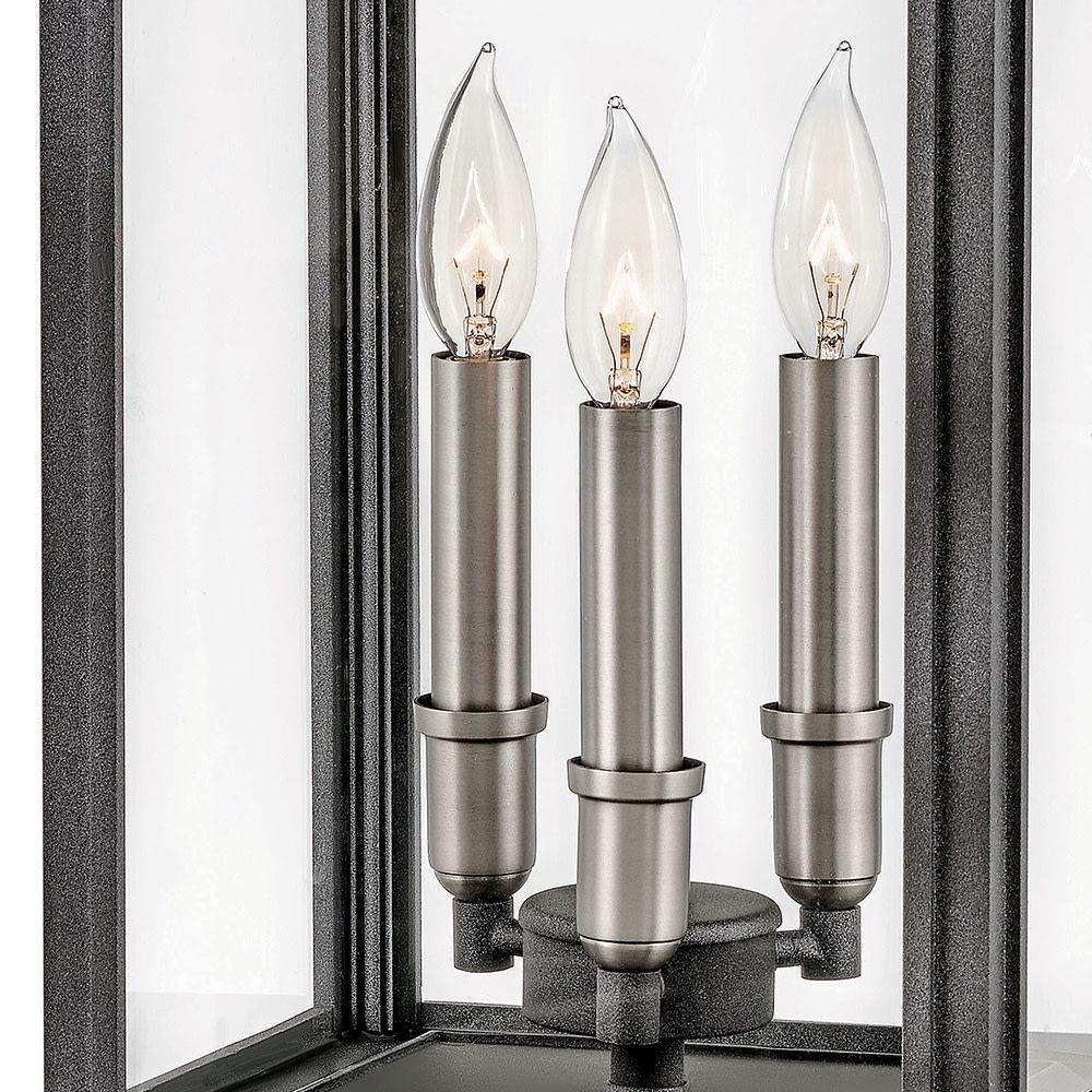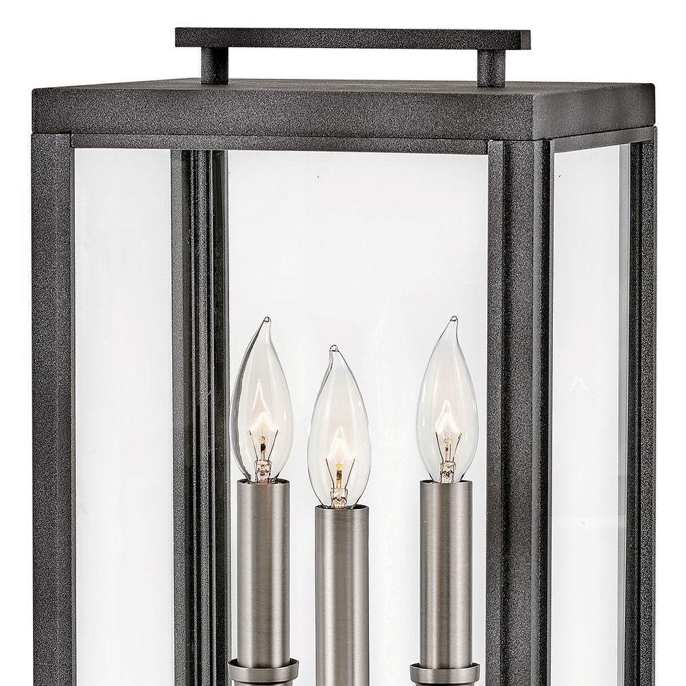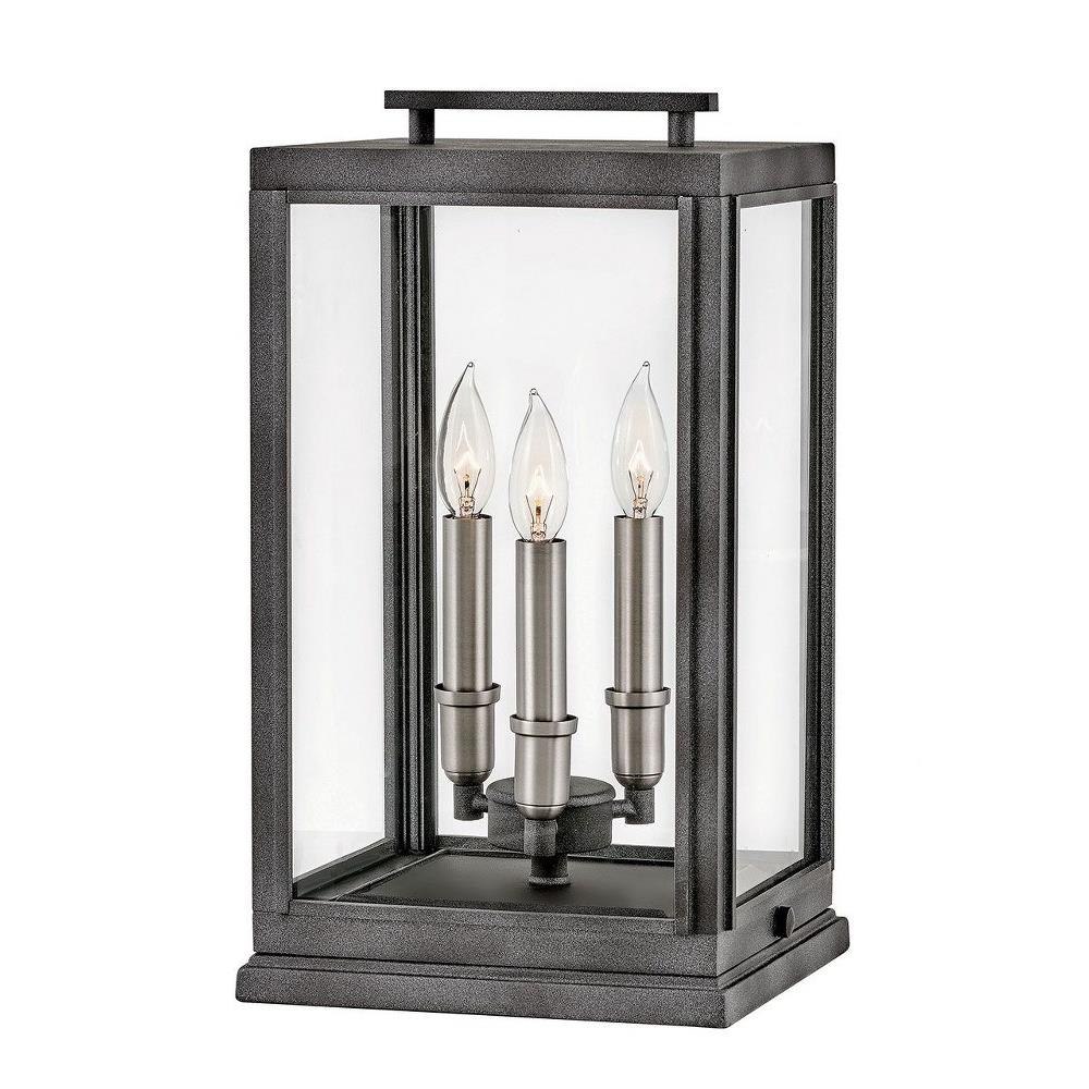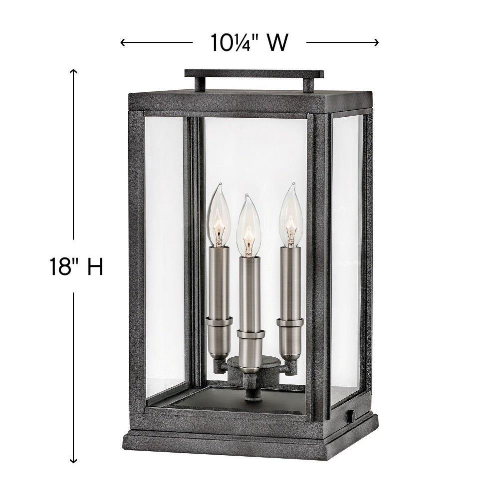 The Sutcliffe collection conveys chic elements of early Americana styling. The candelabra bulbing, clear glass, paired with an accent reflector, infuse this sleek pocket lantern design constructed of solid aluminum with a perfect blend of old and new.Innovative Exterior 12-volt solution for all-in-one lamp, lighting and high design look. Transformer is required and sold separately. / Suitable for use in wet (outdoor direct rain or sprinkler) locations as defined by NEC and CEC. Meets United States UL Underwriters Laboratories & CSA Canadian Standards Association Product Safety Standards / LED Bulbs carry a 3-year limited warranty / Classic lines and heritage details complement traditional architecture / 12-volt LED vintage filament bulbs included / 2 year finish warranty / Images are for reference purpose only and may not be pictured with the specified LED filament bulb. / Bold and robust dark bronze finish / Variety of stylish fixtures customized with vintage filament bulbs / Offers low voltage semi-permanent solutions for unique areas such as pergolas when paired with low voltage Hinkley transformer