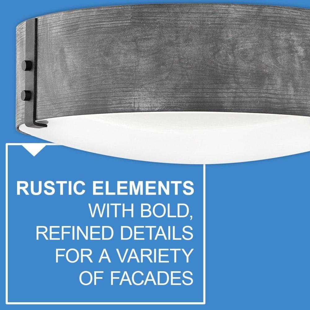 Rich gray tone / Suitable for use in damp locations as defined by NEC and CEC. Meets United States UL Underwriters Laboratories & CSA Canadian Standards Association Product Safety Standards / Meets California Energy Commission Title regulations/JA8 when using the included LED bulb / Rustic elements with bold, refined details complement a variety of facades from farmhouse to contemporary architecture / The stylish Open Air collection includes outdoor-rated chandeliers, pendants and sconces that provide design-conscious solutions to a variety of exterior environments. / LED Bulbs carry a 3-year limited warranty / 2 year finish warranty / Images are for reference purpose only and may not be pictured with the specified LED filament bulb.