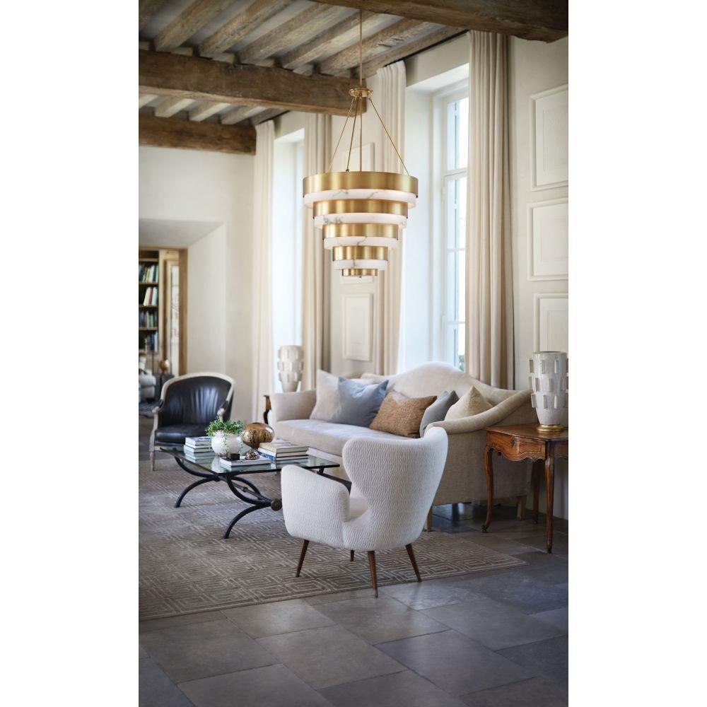 Breathing inspiration drawn from the classic style of Art Deco, Echelon, from our Lisa McDennon Collection, is a multi-tier style in a gleaming Heritage Brass finish. Through her global travels, Lisa McDennon pulls captivating style and trends and incorporates them into her product designs.Suitable for use in dry (indoor) locations as defined by NEC and CEC. Meets United States UL Underwriters Laboratories & CSA Canadian Standards Association Product Safety Standards / This fixture includes multiple down stems in various lengths to customize the installation height of the fixture, including one 6" stem and two 12" stems. / Classic gleaming light brass finish / This stem hung fixture may be hung on a sloped ceiling / Distinctive mid-century modern elements merge with sleek and timeless forms for a vintage vibe with modern flair / The Lisa McDennon Collection offers a striking mix of edgy, sculptural silhouettes that incorporate modern, organic elements and luxe materials, brought to life by her innovative and original point of view.