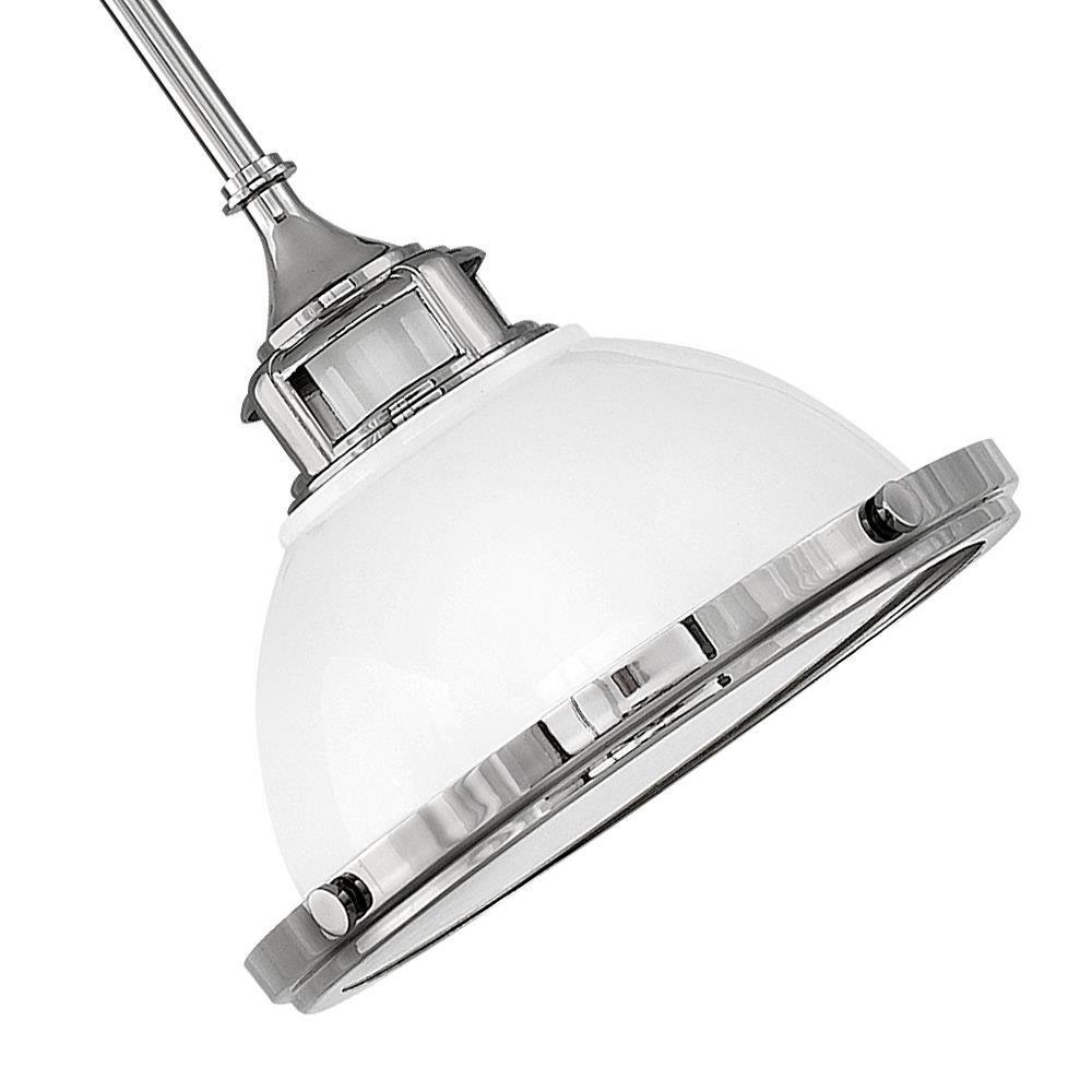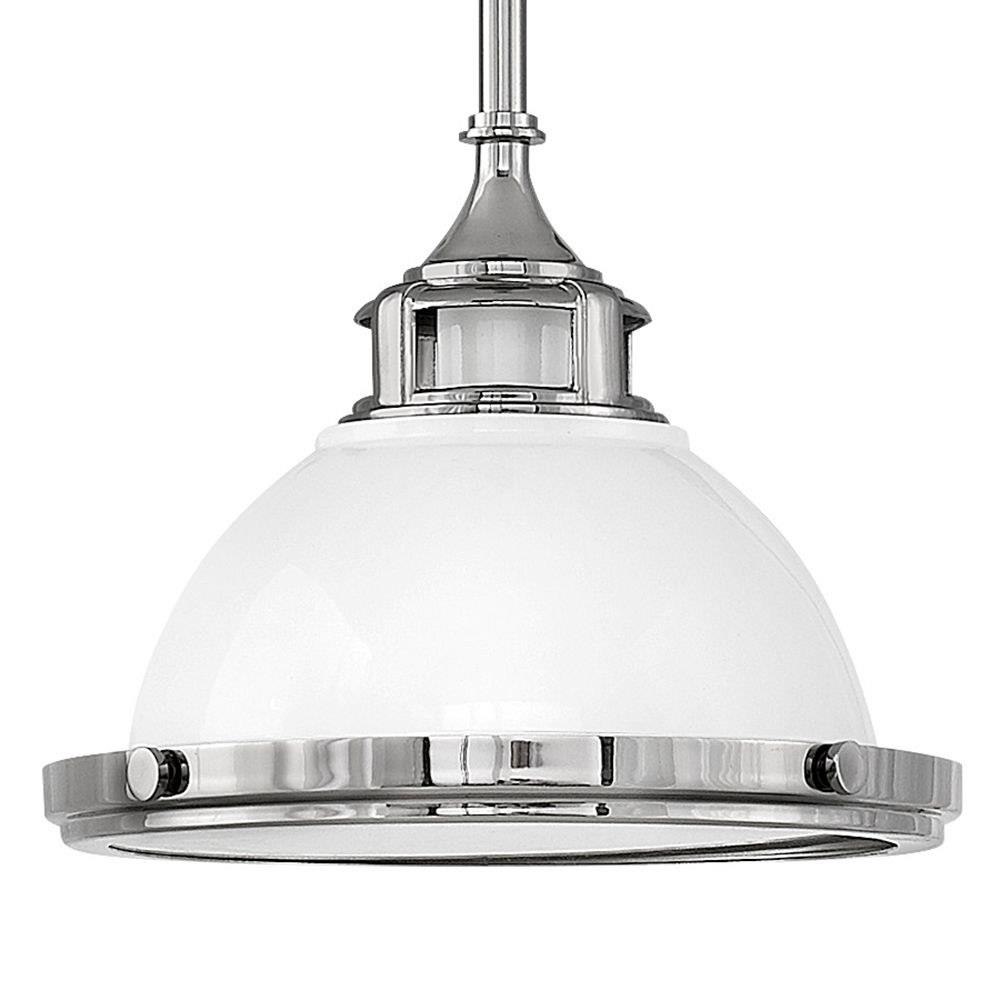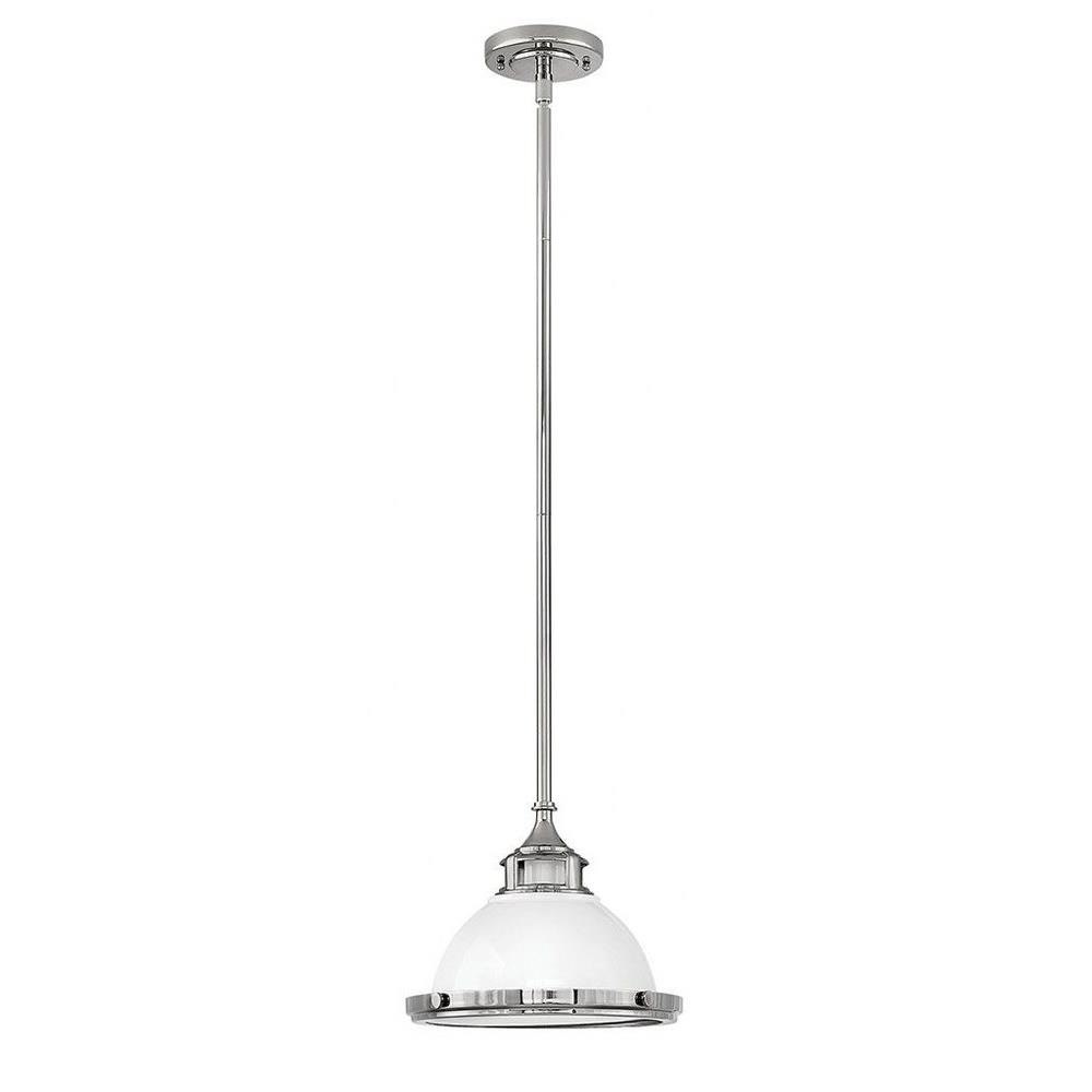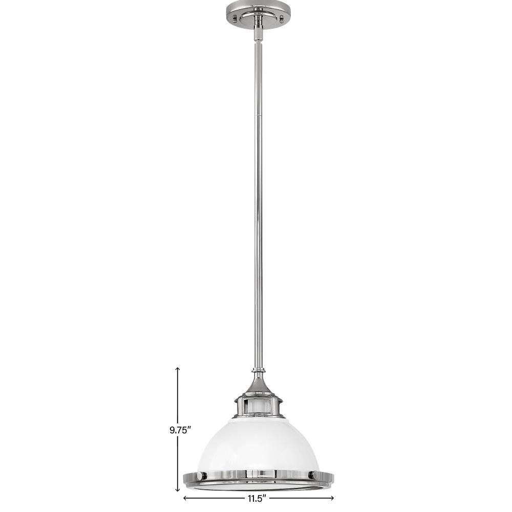 Amelia's classic pendant design reinvents vintage details with a cast metal fitter, decorative metal trim ring and ornamental knobs. Bold finish options glow with retro inspiration.Suitable for use in dry (indoor) locations as defined by NEC and CEC. Meets United States UL Underwriters Laboratories & CSA Canadian Standards Association Product Safety Standards / This fixture includes multiple down stems in various lengths to customize the installation height of the fixture, including one 6" stem and two 12" stems. / Angular lines, a bold finish, simple shape and sturdy details merge for a robust but pared down industrial design / This stem hung fixture may be hung on a sloped ceiling / Neutral perfection with a flawless white finish enhances design