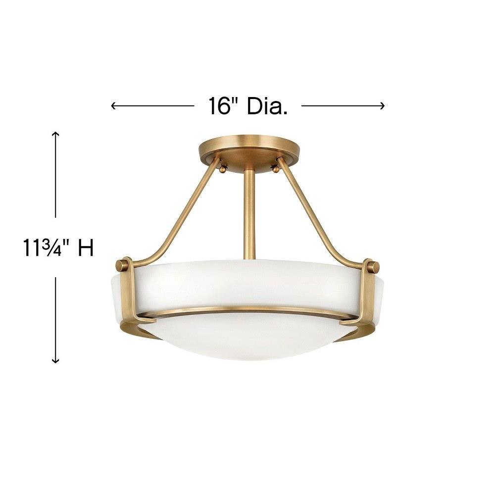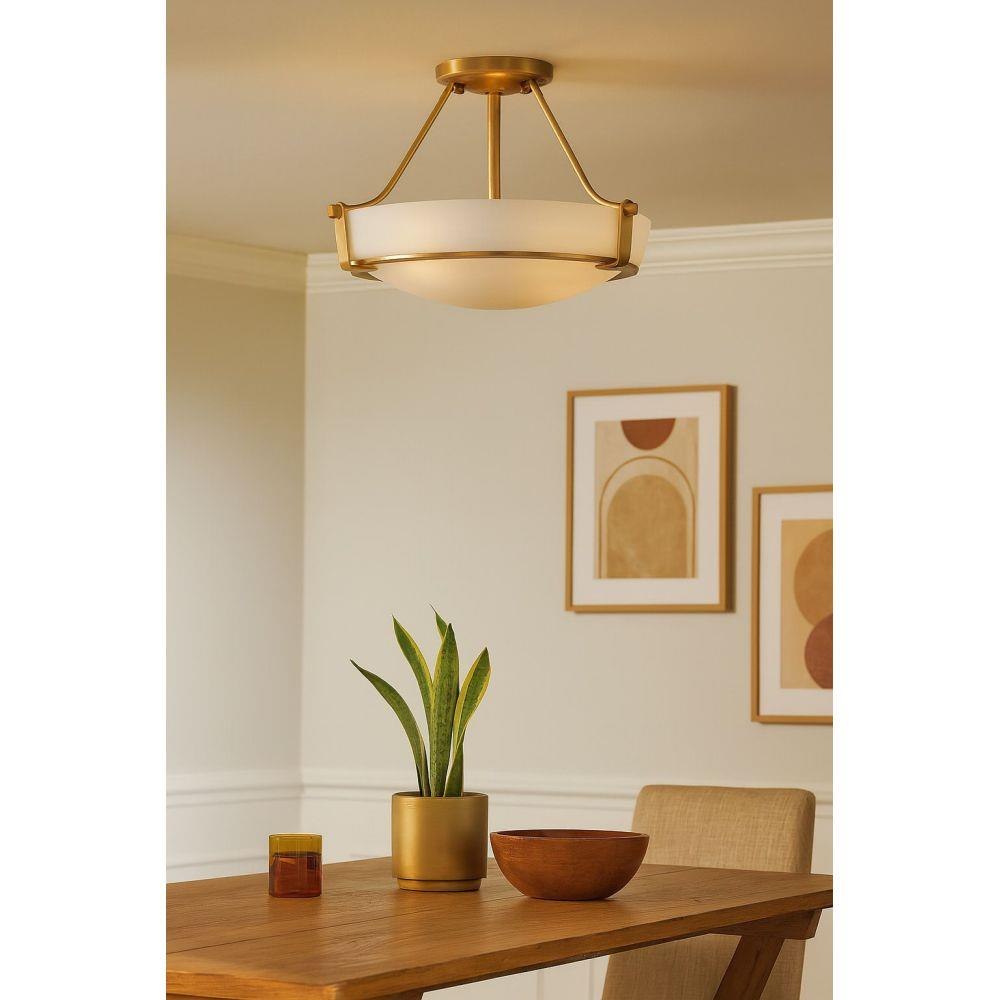Hathaway’s striking design features a bold shade held in place by three intersecting, floating arms with unique forged uprights and ring detail for a modern style.Suitable for use in dry (indoor) locations as defined by NEC and CEC. Meets United States UL Underwriters Laboratories & CSA Canadian Standards Association Product Safety Standards / Classic gleaming light brass finish / Merging the best of traditional and modern elements, with a sophisticated and streamlined silhouette perfect for any space