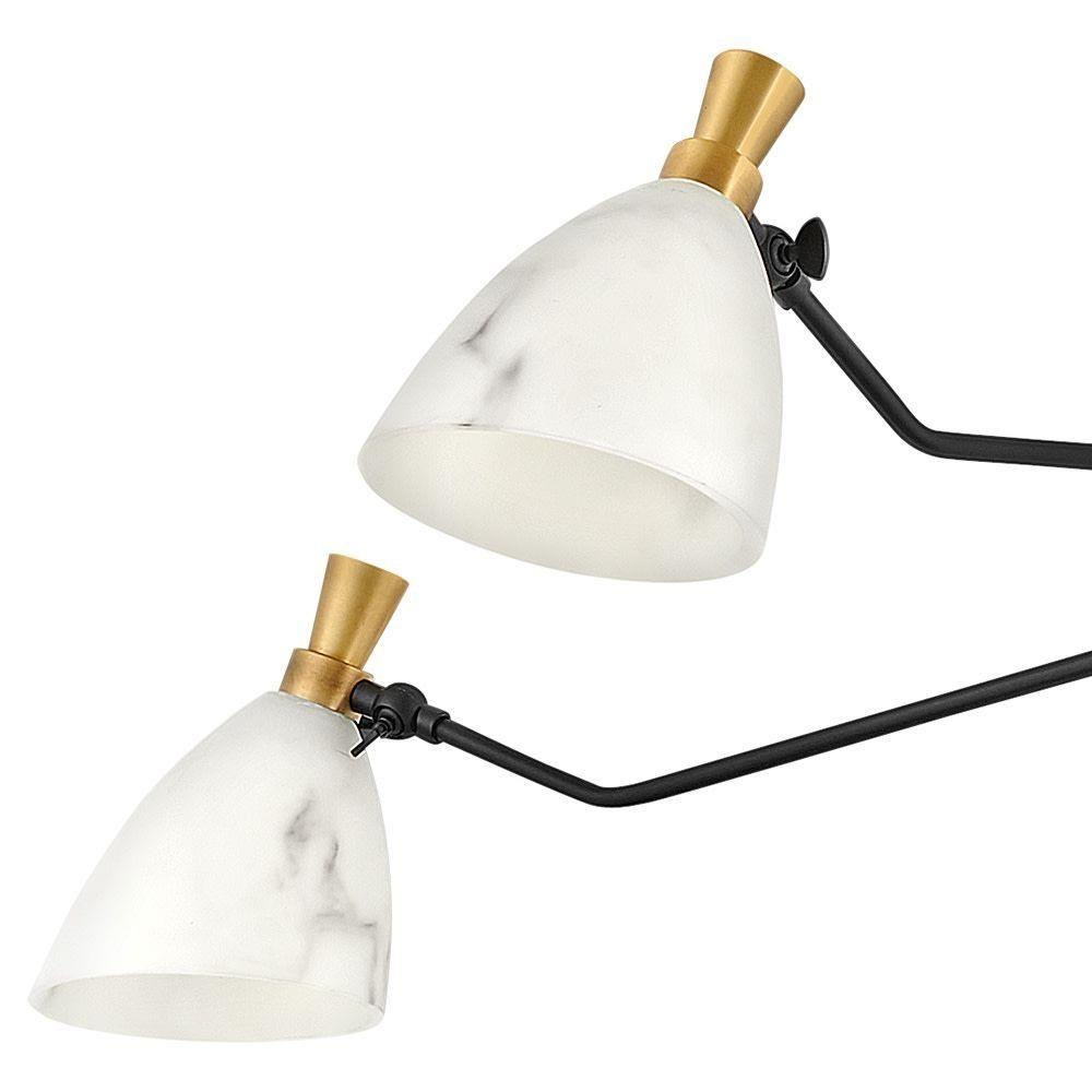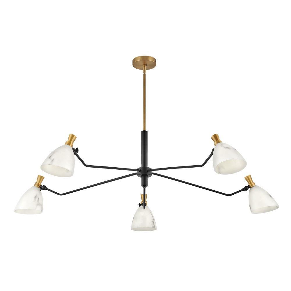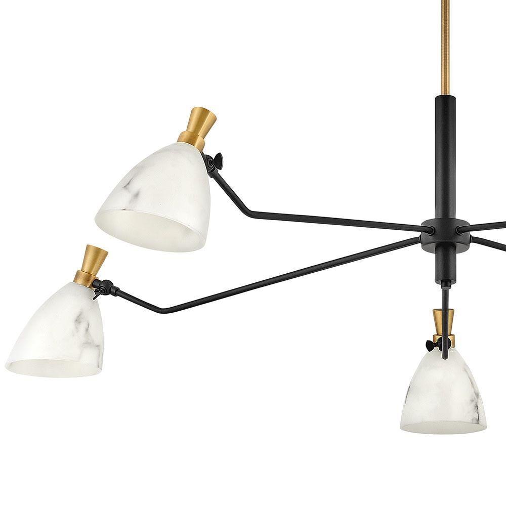 Influenced by a mid-century modern aesthetic, Sinclair’s striking profile is accentuated by stunning details. A classic finish combination of Heritage Brass and Black is paired with luminous, luxurious faux alabaster shades. Sinclair’s sophisticated design offers articulating shades to create a custom look. All designs for Sinclair must be bulbed with LED bulbs only (not included).Suitable for use in dry (indoor) locations as defined by NEC and CEC. Meets United States UL Underwriters Laboratories & CSA Canadian Standards Association Product Safety Standards / This fixture includes multiple down stems in various lengths to customize the installation height of the fixture, including one 6" stem and two 12" stems. / Classic gleaming light brass finish / This stem hung fixture may be hung on a sloped ceiling / Distinctive mid-century modern elements merge with sleek and timeless forms for a vintage vibe with modern flair / Candelabra LED lamps required