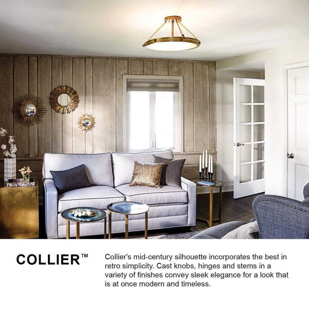 Collier’s mid-century silhouette incorporates the best in retro simplicity. Cast knobs, hinges and stems in a Light Oiled Bronze finish convey sleek elegance for a look that is at once modern and timeless.