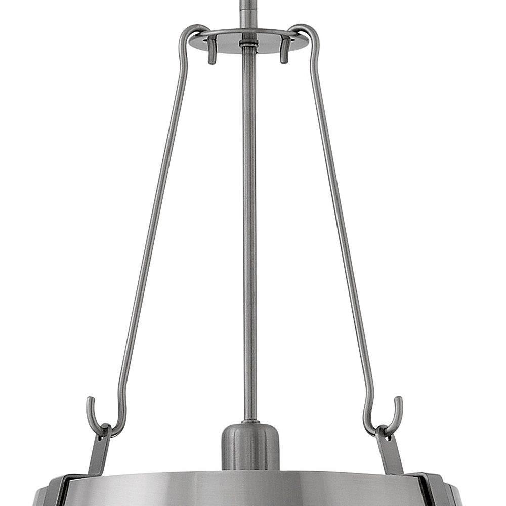 The Cartwright pendant collection captures a modern farmhouse aesthetic with its minimalist silhouette enriched by exquisite details and rich finishes. Contrasting straps are enhanced by bold rivets while robust hooks add a masculine elegance.Suitable for use in dry (indoor) locations as defined by NEC and CEC. Meets United States UL Underwriters Laboratories & CSA Canadian Standards Association Product Safety Standards / This fixture includes multiple down stems in various lengths to customize the installation height of the fixture, including one 6" stem and two 12" stems. / Angular lines, a bold finish, simple shape and sturdy details merge for a robust but pared down industrial design / This chain or cable hung fixture may be installed on any sloped ceiling / Rich gray tone / This stem hung fixture may be hung on a sloped ceiling