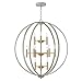 Hinkley Euclid Twelve Light Three Tier Orb Chandelier, Modern, Vintage Filament Bulbs, Cement Gray w/Brushed Gold Accents
