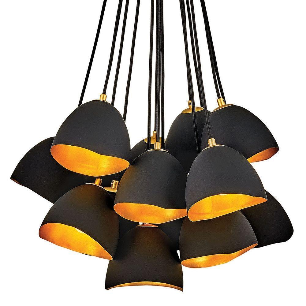 Suitable for use in dry (indoor) locations as defined by NEC and CEC. Meets United States UL Underwriters Laboratories & CSA Canadian Standards Association Product Safety Standards / This fixture includes multiple down stems in various lengths to customize the installation height of the fixture, including one 6" stem and two 12" stems. / This chain or cable hung fixture may be installed on any sloped ceiling / This stem hung fixture may be hung on a sloped ceiling / Striking black finish enhances design / Eclectic style that mixes unconventional elements; unique and sophisticated designs that feel modern and vintage at the same time. / Provided with an adjustable ring for a custom look / The Lisa McDennon Collection offers a striking mix of edgy, sculptural silhouettes that incorporate modern, organic elements and luxe materials, brought to life by her innovative and original point of view.