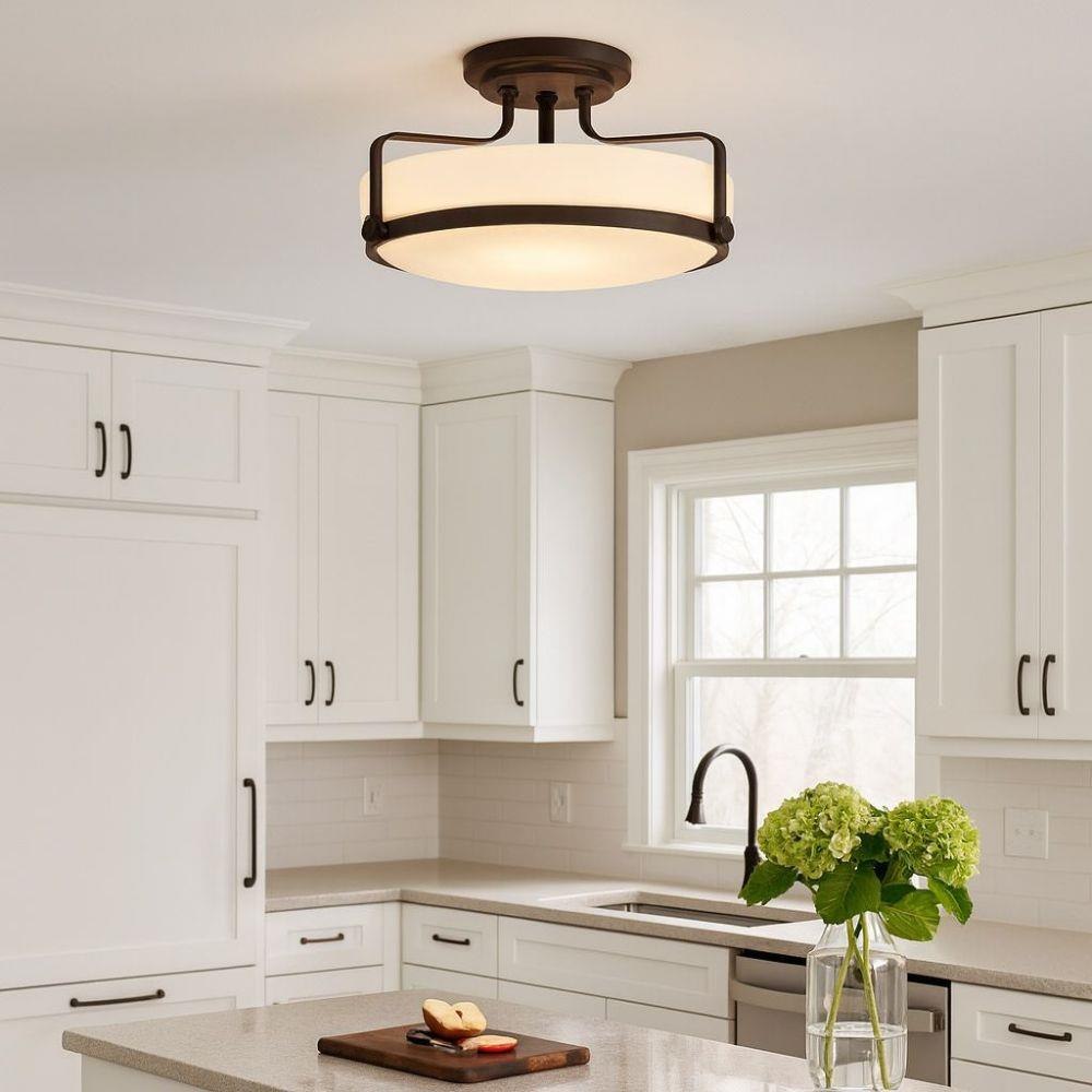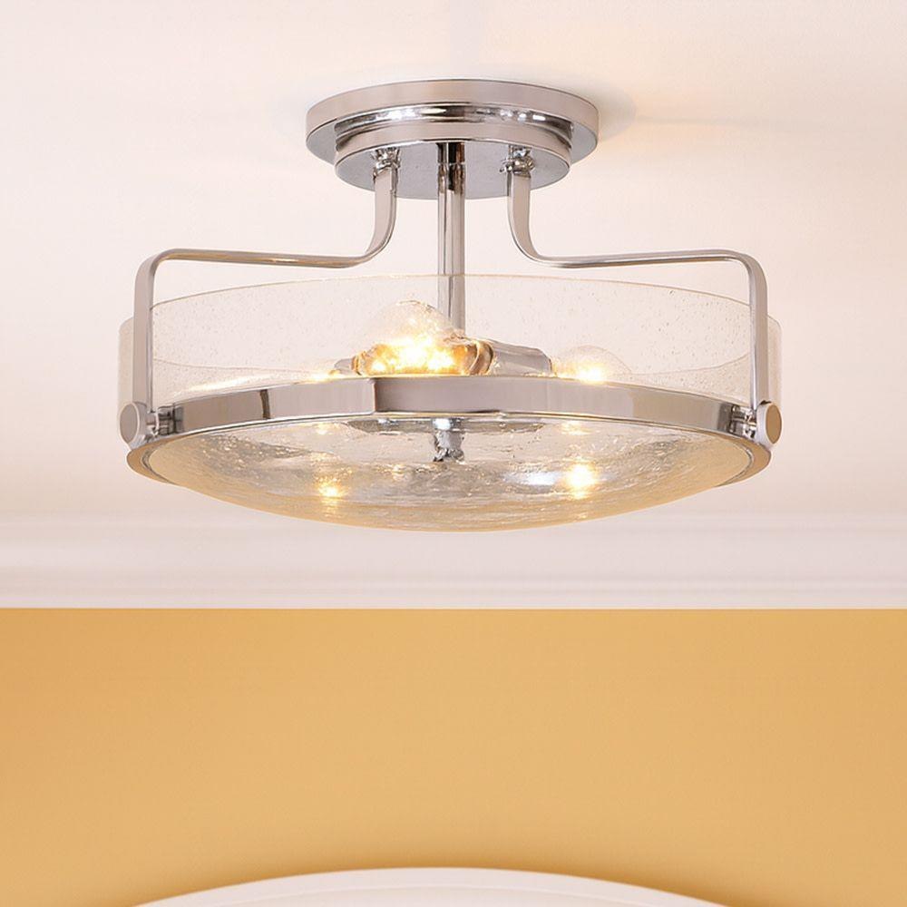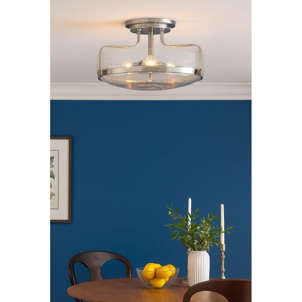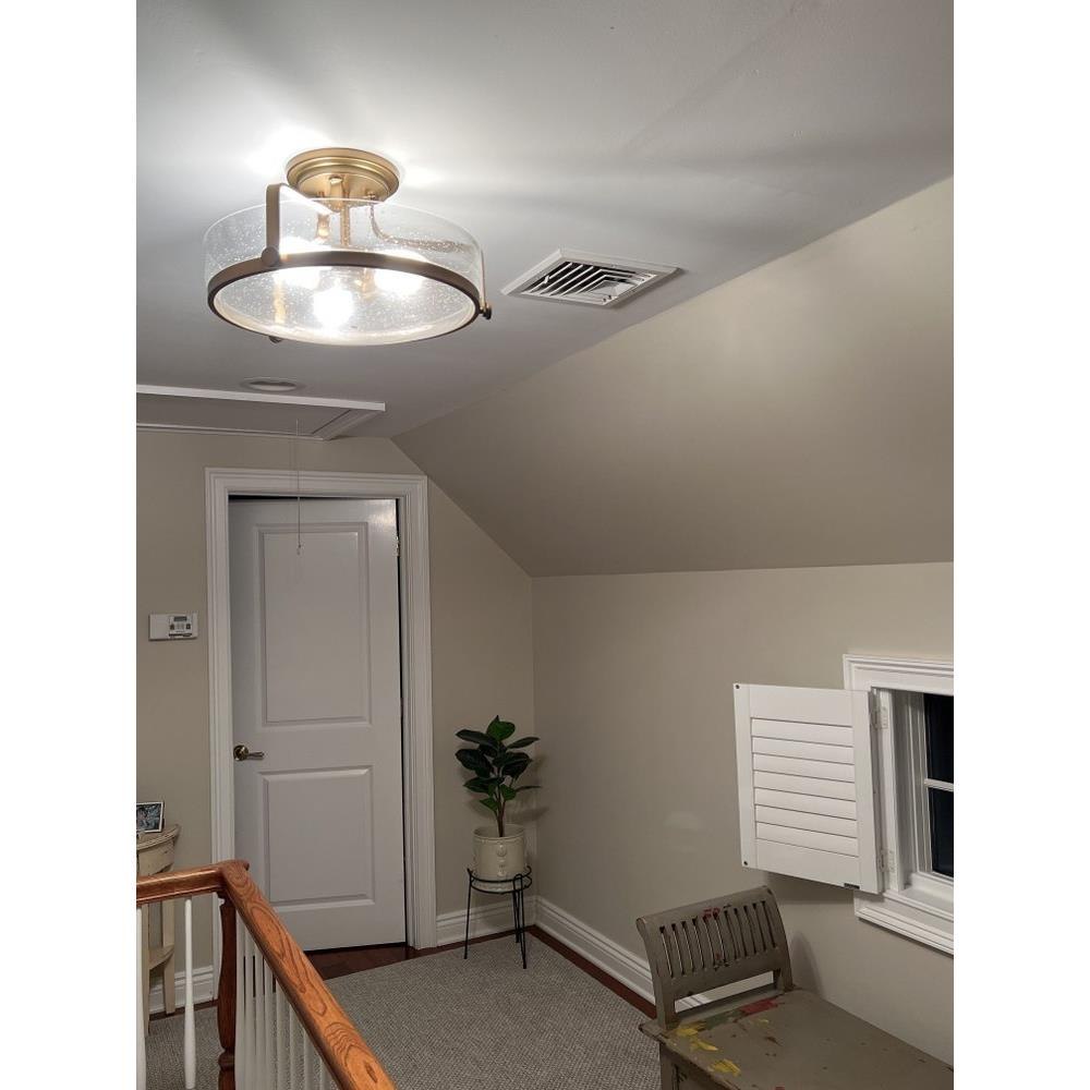 Harper’s sleek, retro design elevates the traditional ceiling mount with a unique clear seedy glass bound by a prominent metal ring and decorative knobs. Available in five classic finishes.Suitable for use in dry (indoor) locations as defined by NEC and CEC. Meets United States UL Underwriters Laboratories & CSA Canadian Standards Association Product Safety Standards / Classic gleaming light brass finish / Merging the best of traditional and modern elements, with a sophisticated and streamlined silhouette perfect for any space