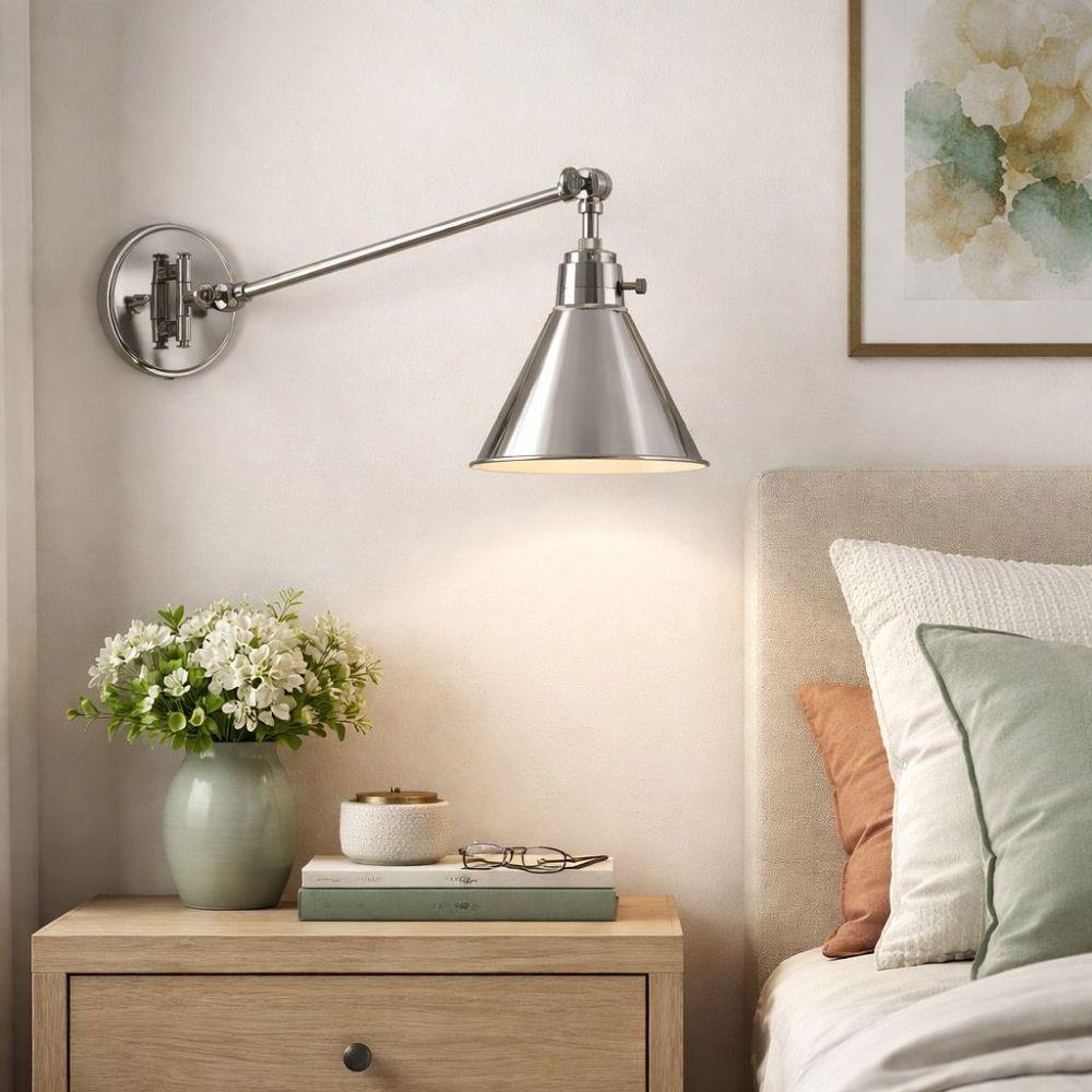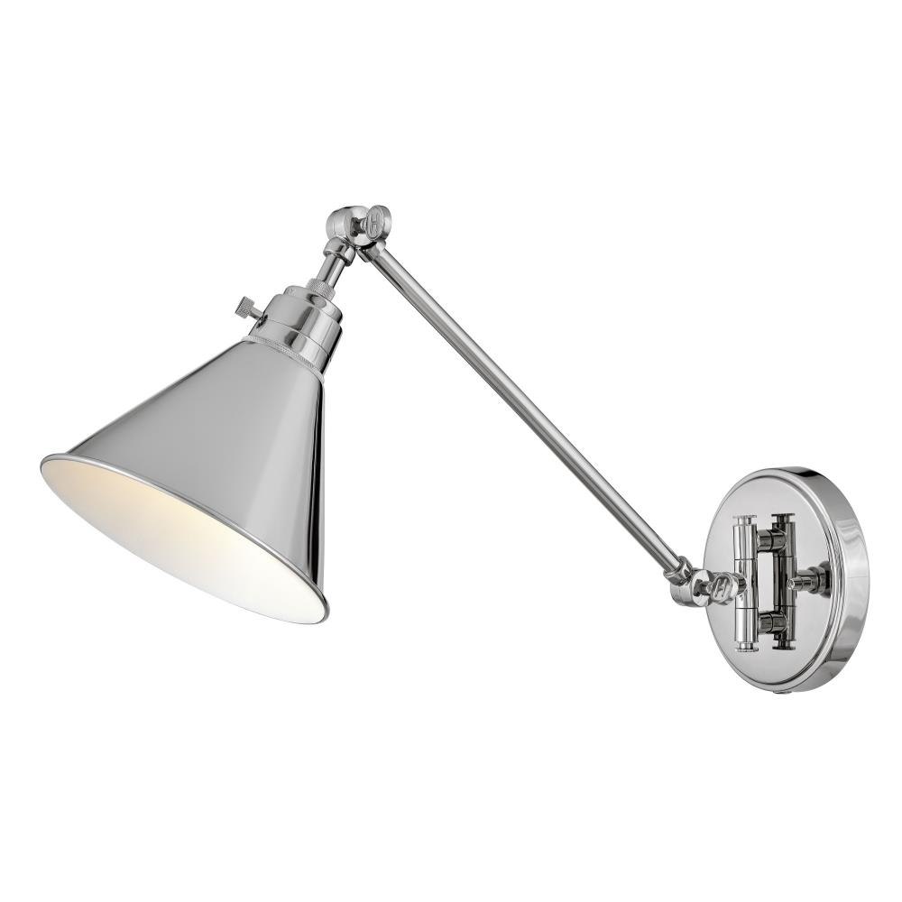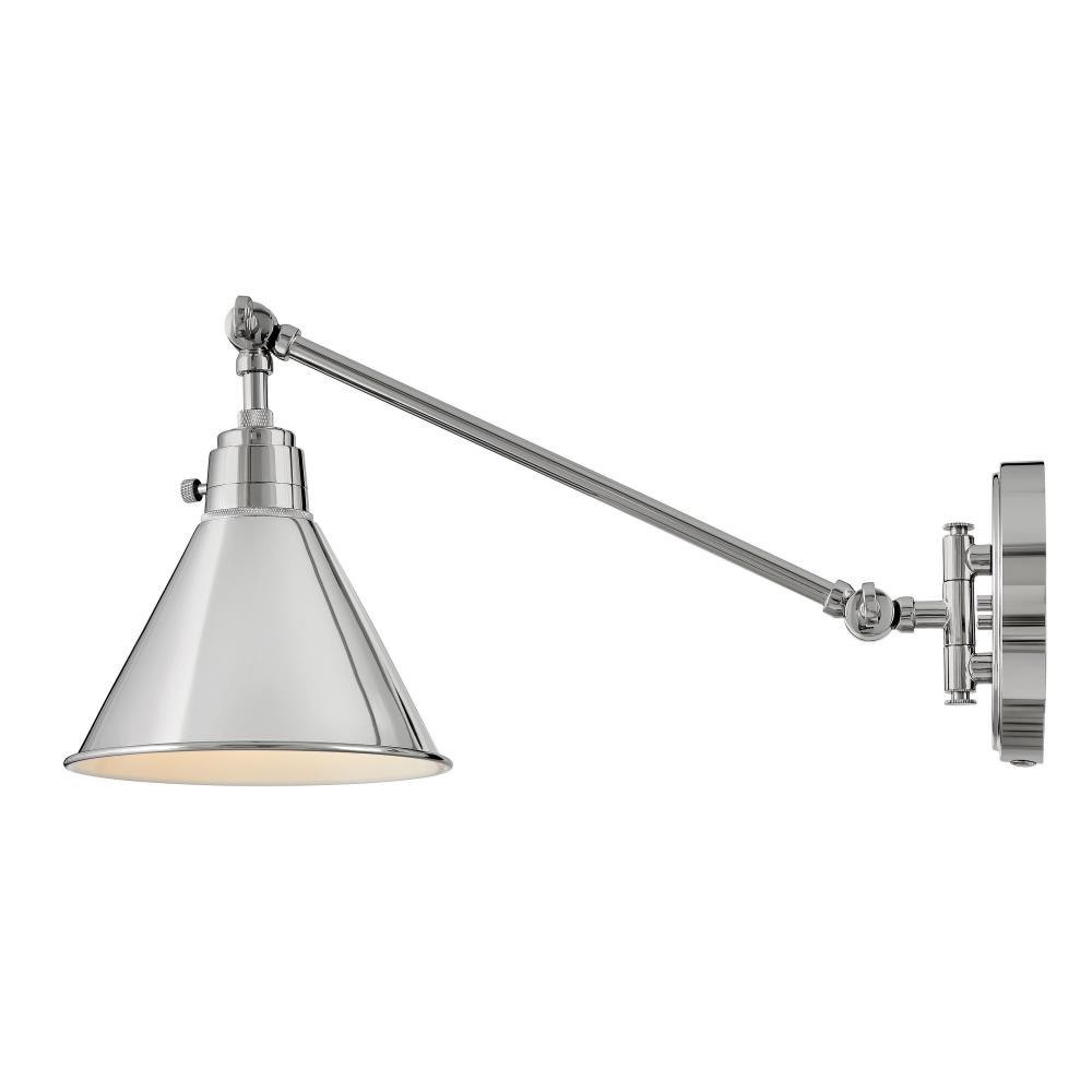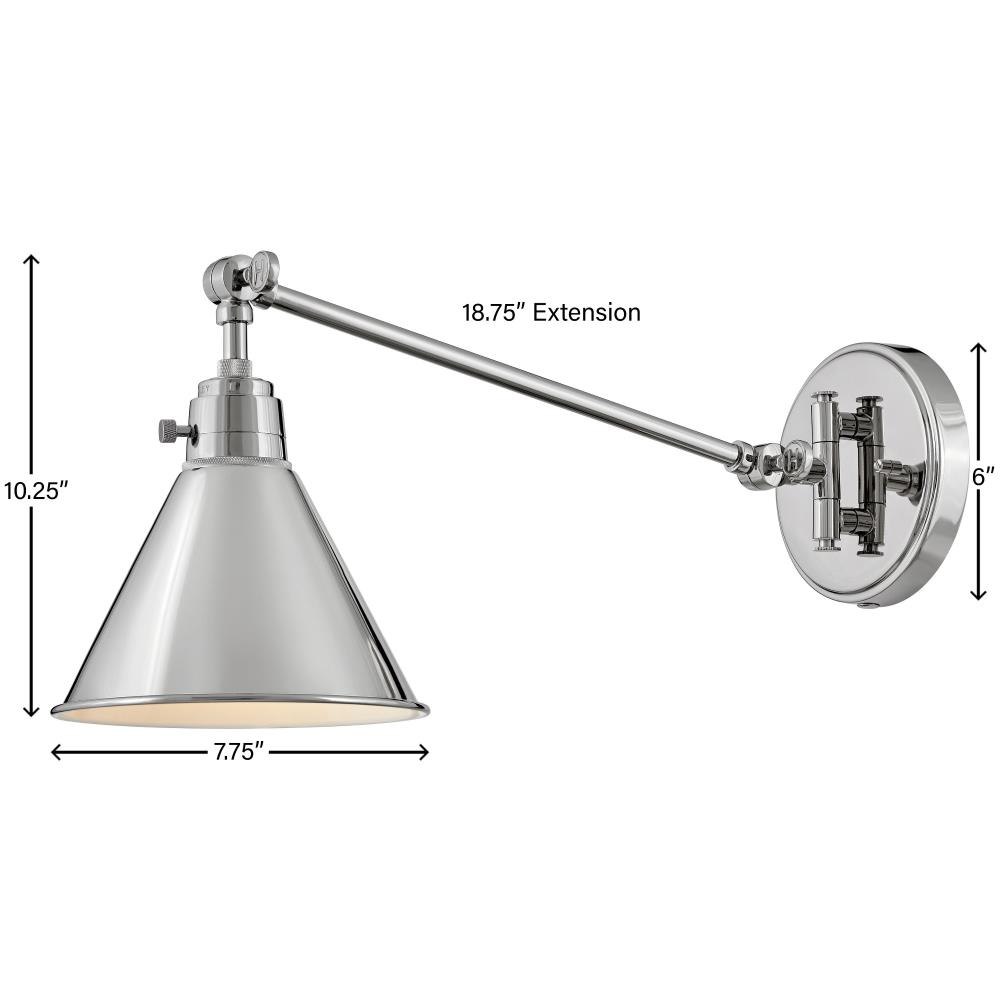 The perfect fixture for any space, Arti embodies simple elegance with its functional, streamlined design. Offering a robust lineup of fixture silhouettes, every aspect of the Arti family is adorned with practical features for a seamless integration into any room.Suitable for use in dry (indoor) locations as defined by NEC and CEC. Meets United States UL Underwriters Laboratories & CSA Canadian Standards Association Product Safety Standards / 20.5" extension when fixture is fully extended / Fully adjustable both left or right and up or down. / All dimensions listed are as shown. / Features On/Off switch / Gleaming luxe polished nickel finish / Classic, elegant lines and timeless details enhance a traditional space / Can be hard wired or mounted with fabric covered plug-in cord. / Optional cord cover available, 6938PN