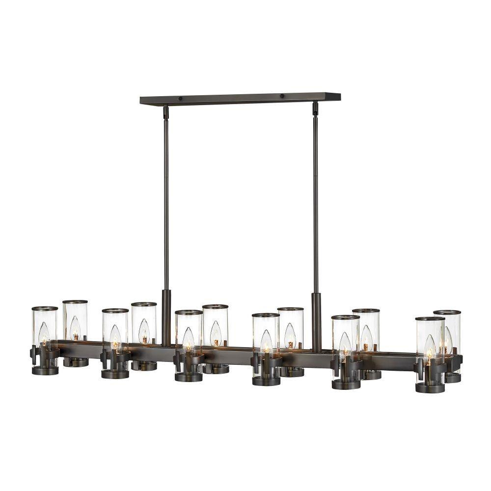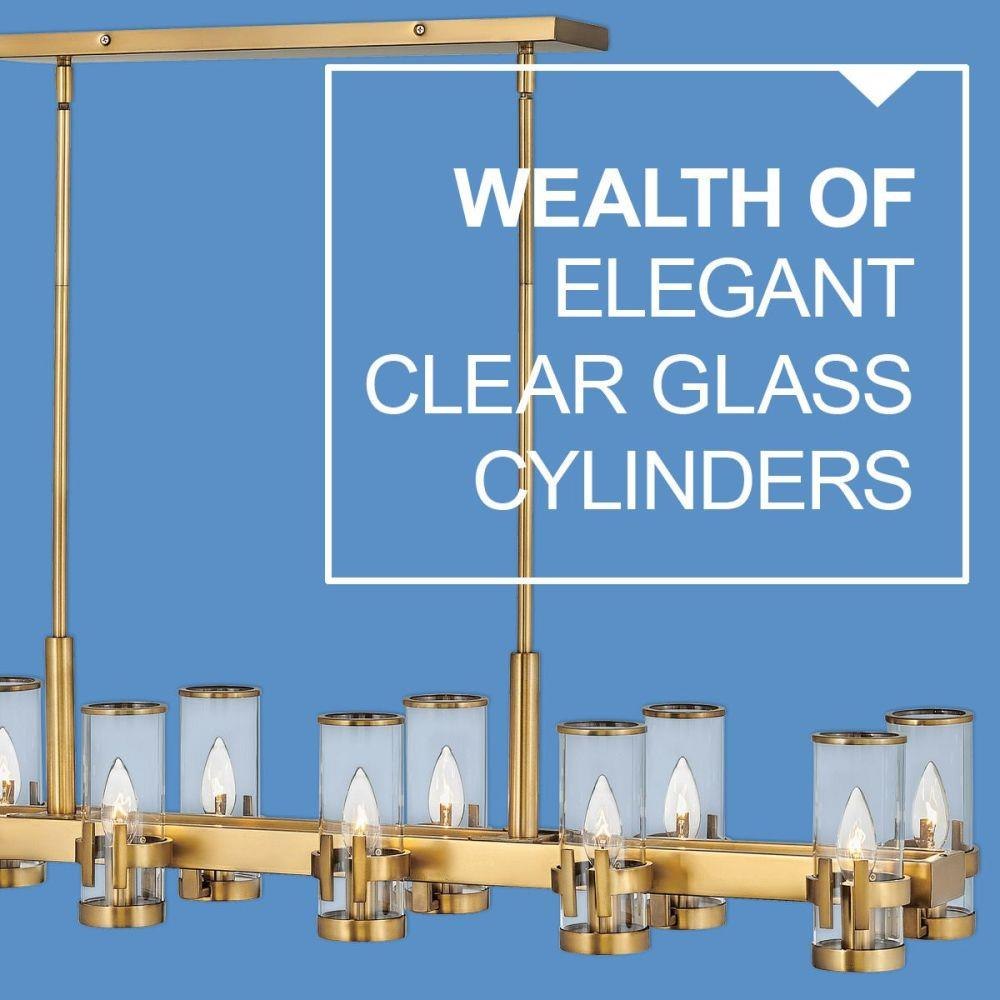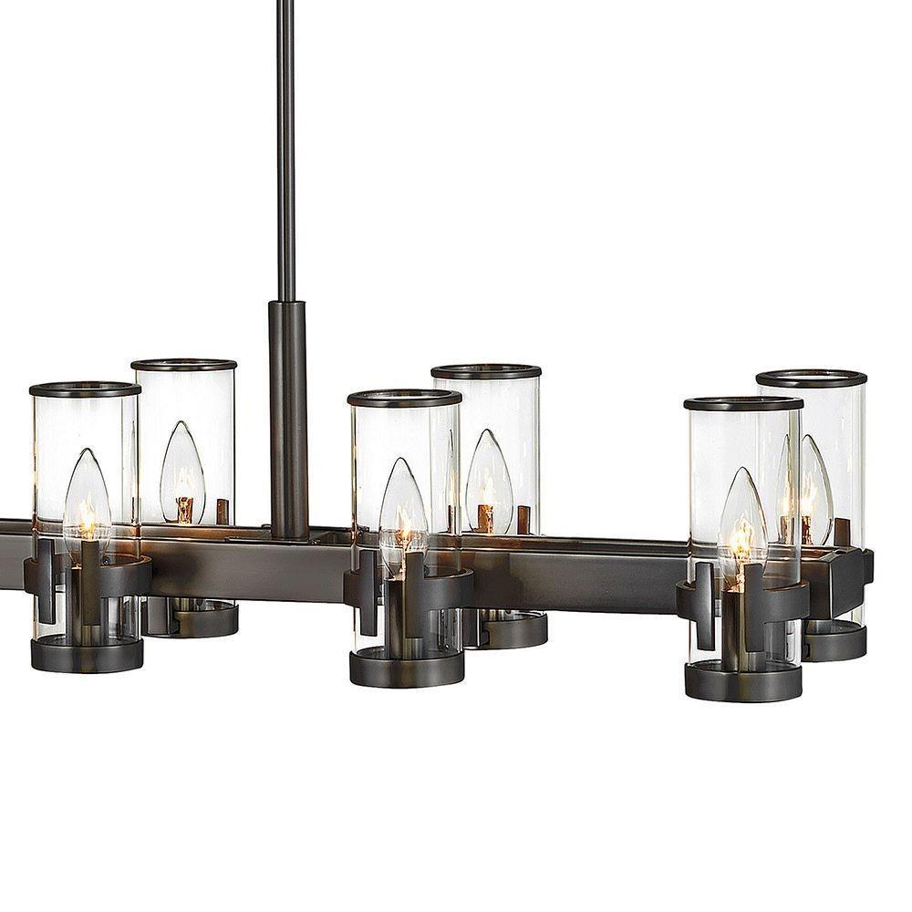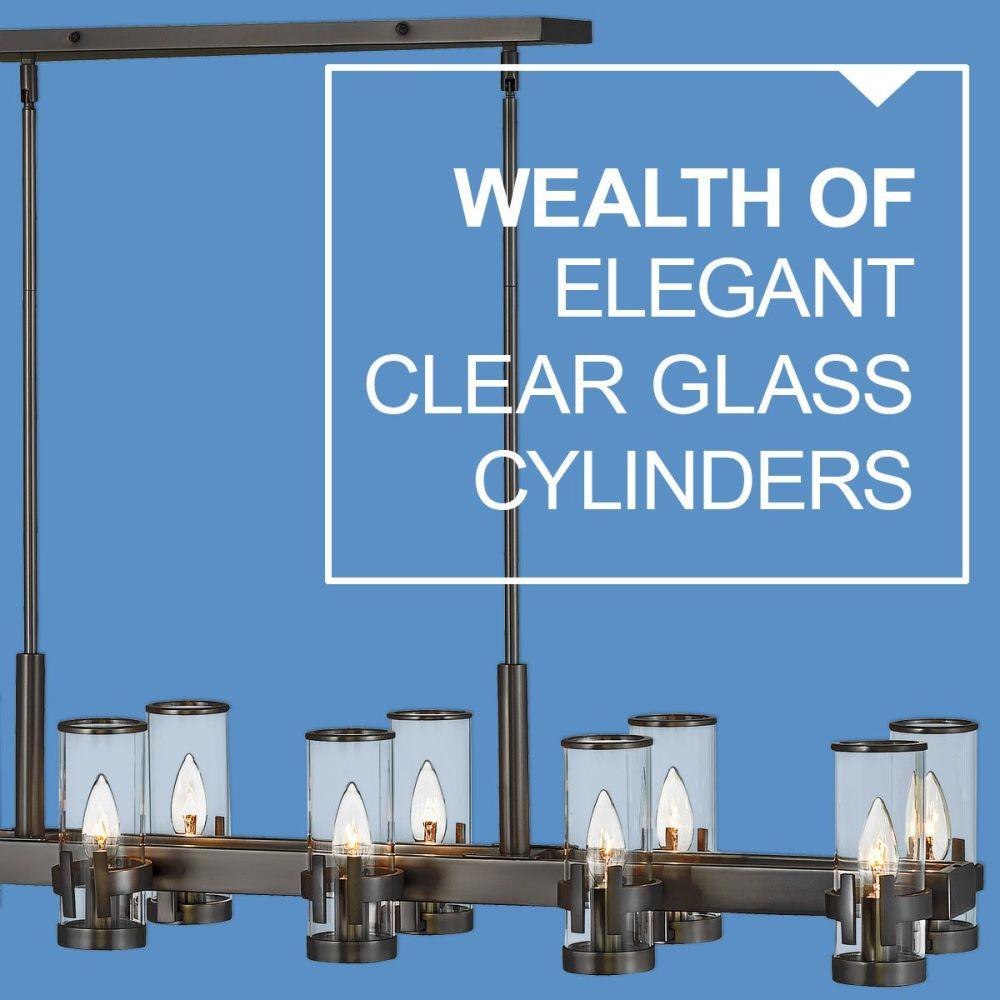The Reeve chandelier balances sophistication with simplicity. The traditional low-profile silhouette is elevated by a wealth of elegant clear glass cylinders. Each glass is secured with a cast double-T bracelet matching the frame's luxurious finish with a corresponding metal band at the top.Suitable for use in dry (indoor) locations as defined by NEC and CEC. Meets United States UL Underwriters Laboratories & CSA Canadian Standards Association Product Safety Standards / This fixture includes multiple down stems in various lengths to customize the installation height, including two 6" stems and four 12" stems. / This stem hung fixture may be hung on a sloped ceiling / Striking black finish enhances design / Classic, elegant lines and timeless details enhance a traditional space