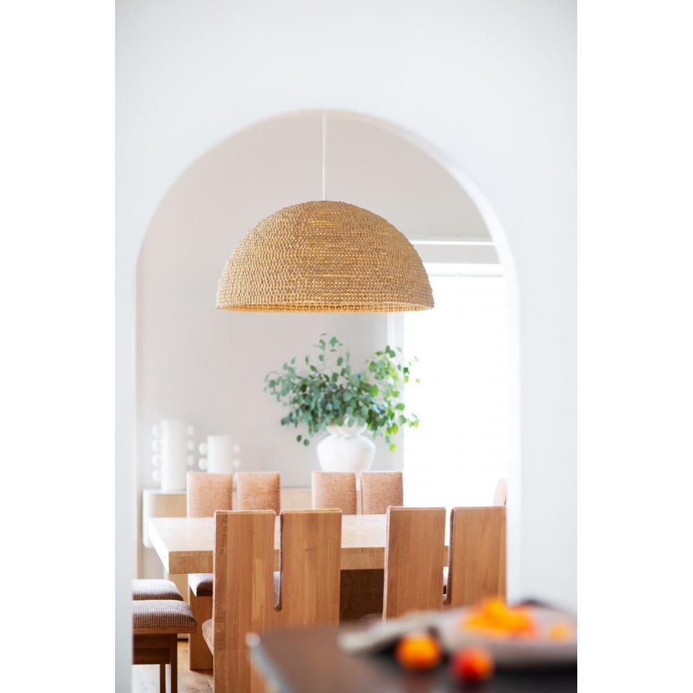 A warm, textural take on a traditional dome pendant, Dalia’s details come together in all the right ways. The dome shade is adorned with wooden beads, each one hand-strung for a unique look. The graceful, oversized profile is ready to finish-off your bohemian or Scandinavian look.