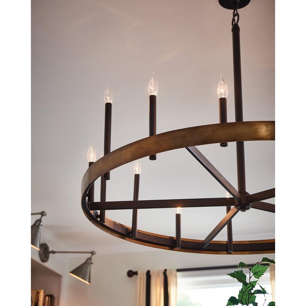 Authentic, vintage lighting that feels at home in an industrial setting is right in the wheelhouse for Wells. A wide band of solid weathered brass lays a firm foundation for a striking centerpiece to any space. Tapered candle sleeves reach up at staggered heights to create a true Old World aesthetic.Suitable for use in dry (indoor) locations as defined by NEC and CEC. Meets United States UL Underwriters Laboratories & CSA Canadian Standards Association Product Safety Standards / Angular lines, a bold finish, simple shape and sturdy details merge for a robust but pared down industrial design / This chain or cable hung fixture may be installed on any sloped ceiling / Ideal for vintage filament bulbs (not included) / Rich dark brass finish