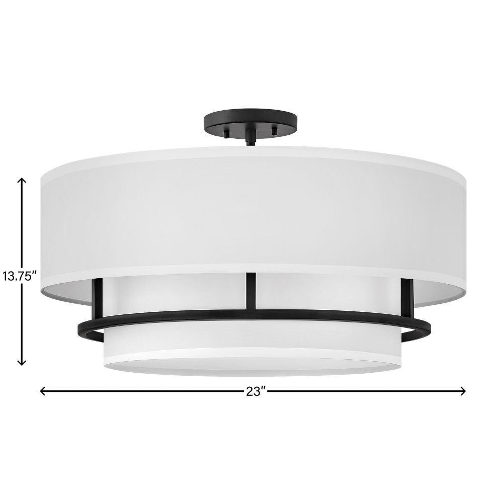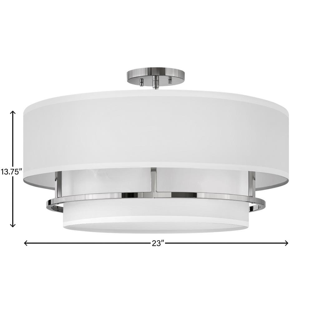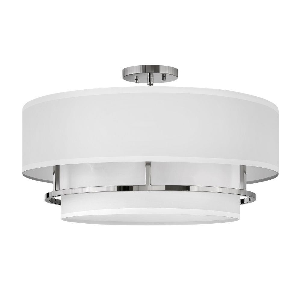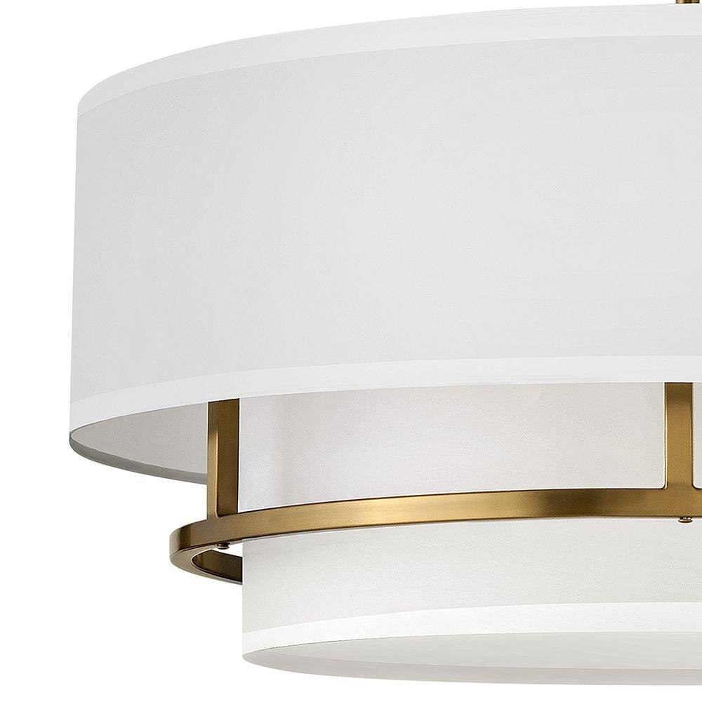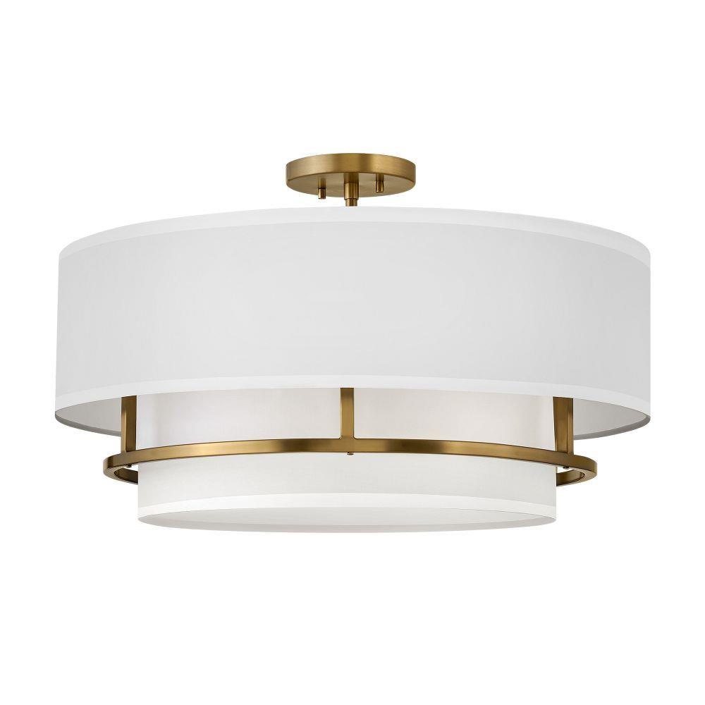 Handsome Graham is understated elegance, crafted with unique details making it the ultimate transitional semi-flush mount. Its welded frame is nestled between two off-white shades, in luminous faux parchment with a finished cluster visible from below. Graham is available in multiple finish options.Suitable for use in dry (indoor) locations as defined by NEC and CEC. Meets United States UL Underwriters Laboratories & CSA Canadian Standards Association Product Safety Standards / Classic gleaming light brass finish / Merging the best of traditional and modern elements, with a sophisticated and streamlined silhouette perfect for any space
